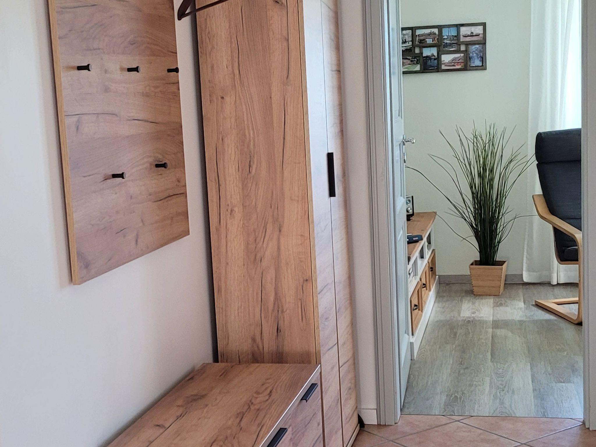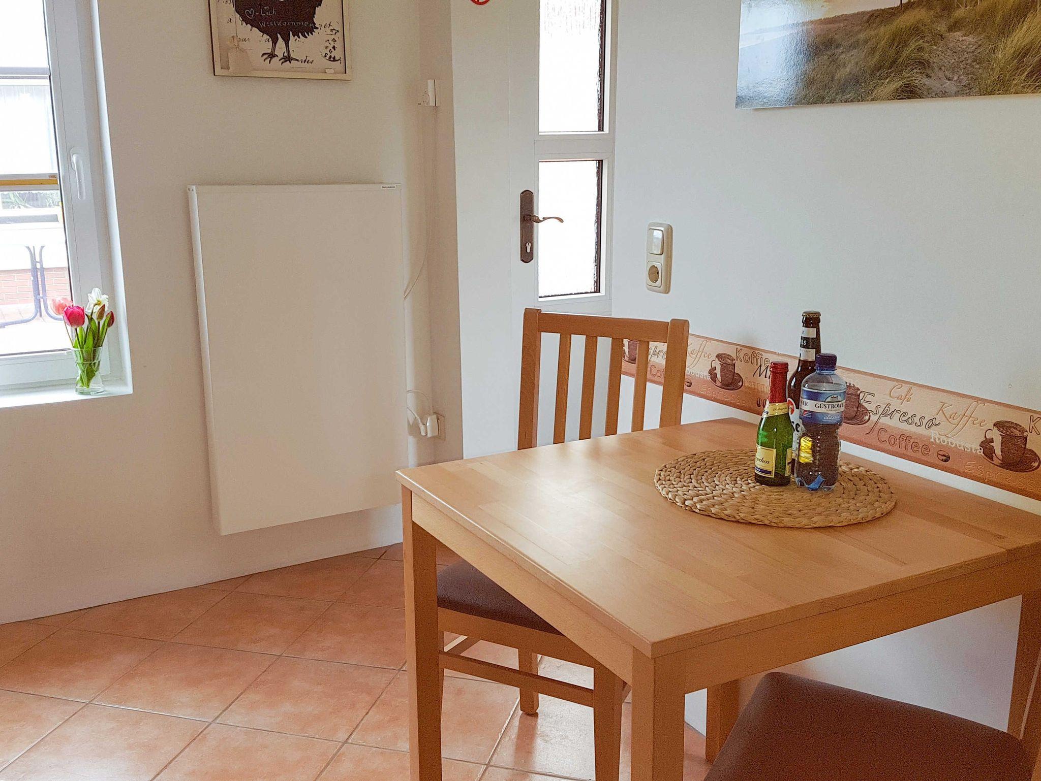 Die Ferienwohnung ist 45m² groß, ebenerdig und befindet im Anbau eines reetgedachten Hauses. Die über einen separaten Eingang erreichbare Ferienwohnung verfügt über ein Schlafzimmer, Wohnzimmer, Küche und Bad mit Dusche/WC. Sie ist gemütlich und modern eingerichtet. Im Schlafzimmer befindet sich ein Doppelbett (160x200m, getrennte Matratzen) mit Nachtschränken, Kommode, Sitzbank und kleinem Kleiderschrank. Vom gemütlichen Wohnzimmer mit Ecksofa, Schwingsessel, Schreibtisch, Fernseher und Radio, haben Sie einen Blick bis zum Wasser und über die Felder. Die Küche ist ausgestattet mit einer Küchenzeile, Herd, Backofen, Kühlschrank mit Gefrierfach, Mikrowelle, Kaffeemaschine, Wasserkocher, Toaster, Eierkocher und einem Esstisch für zwei Personen. Der Garten sowie die Sitzecke und Grill können mitbenutzt werden. Vor dem Haus ist ein Pkw-Stellplatz vorhanden. In dieser Ferienwohnung wird Strom (auch Elektroheizung) vor Ort nach Verbrauch abgerechnet.