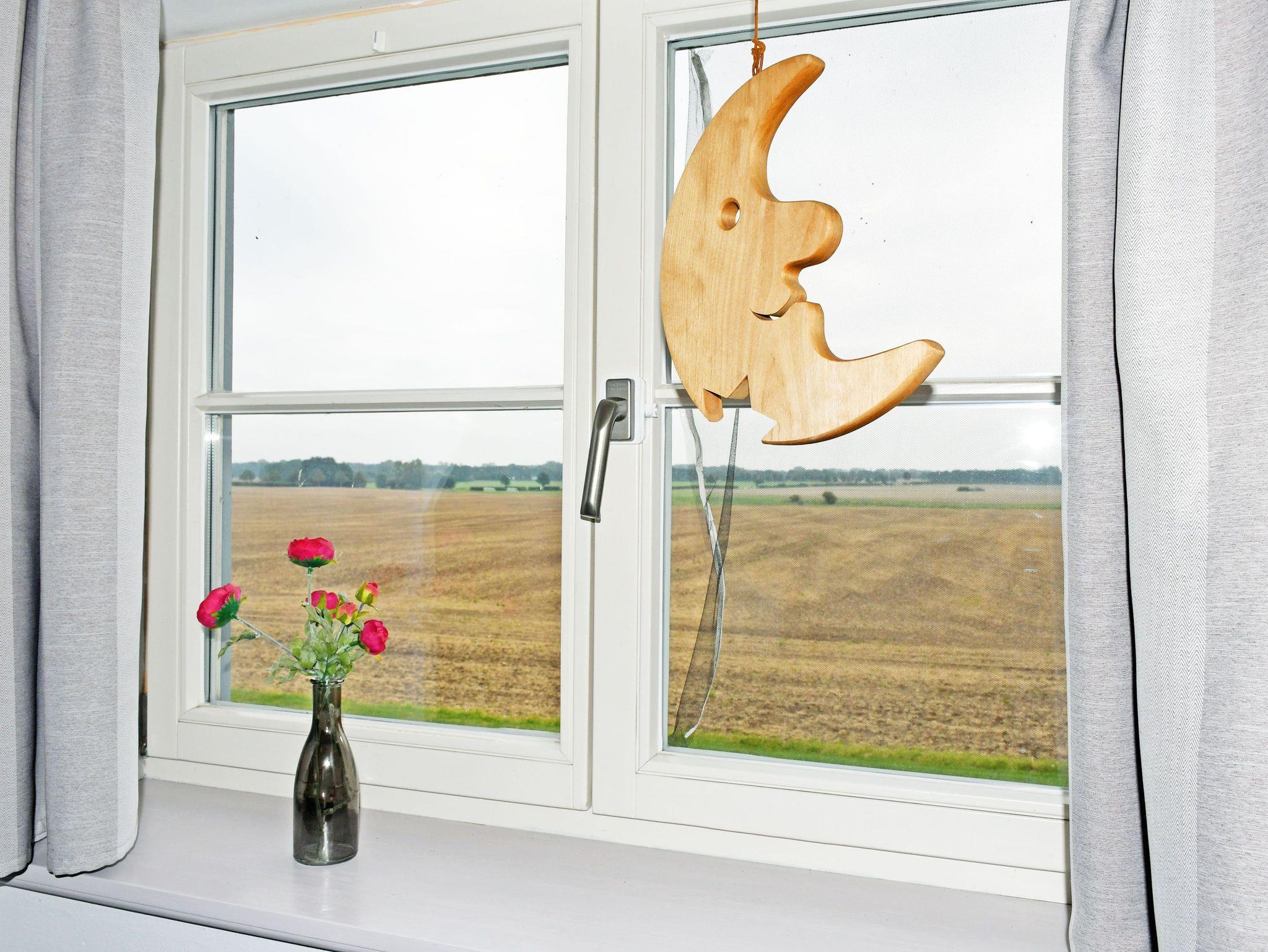 Die Treppe zum Obergeschoss hat eine Kindersicherung und die Fenster verfügen über Insektenschutz.