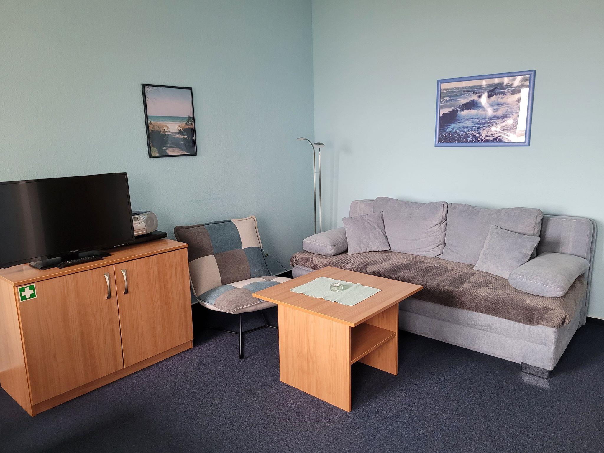 Unsere Ferienwohnung ist 53 qm groß und verfügt über zwei Schlafzimmer (1 x Doppbett, 1 x 2 Einzelbetten) und einen gemütlichen offenen Wohn- und Essbereich mit gut ausgestatter Einbauküche, Sat/TV und Radio/CD. Im Wohnbereich ist ein Schlafsofa vorhanden.