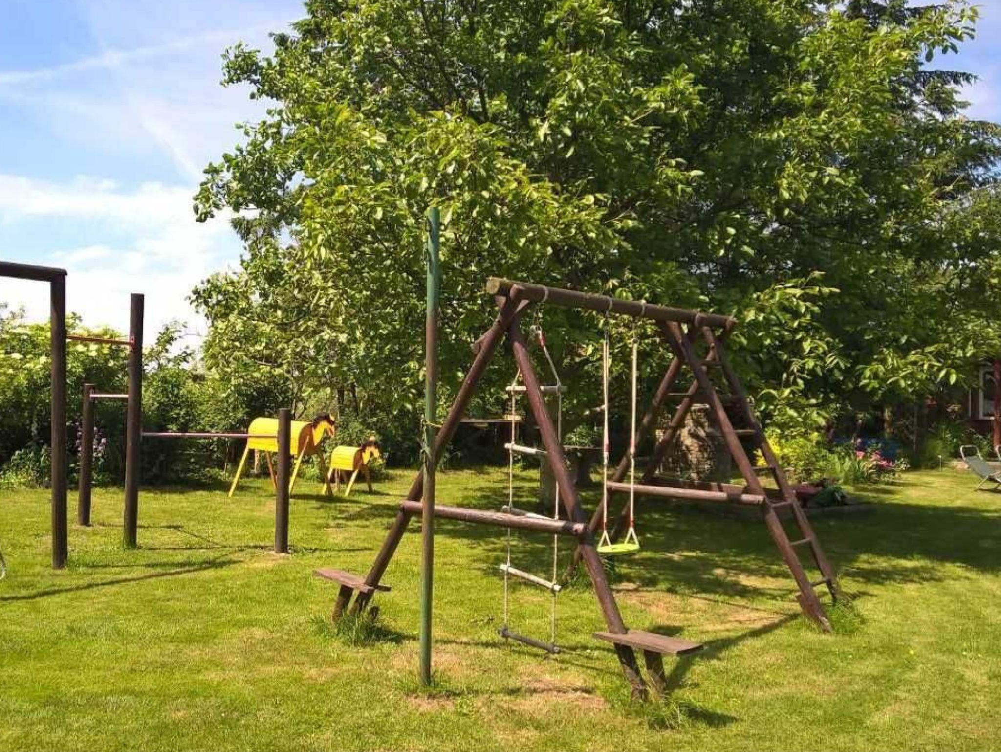 Im Außenbereich steht Ihnen ein großer Garten mit Grill, Sitzecken, Gartenmöbeln und Sonnenliegen zur Verfügung. Kinder freuen sich über Spielmöglichkeiten wie Trampolin, Schaukeln und Sandkasten sowie viel Platz zum Fußballspielen und Toben. Bitte beachten Sie: Auf dem Grundstück befinden sich noch zwei Ferienbungalows, daher ist der Garten nicht zur Alleinnutzung.