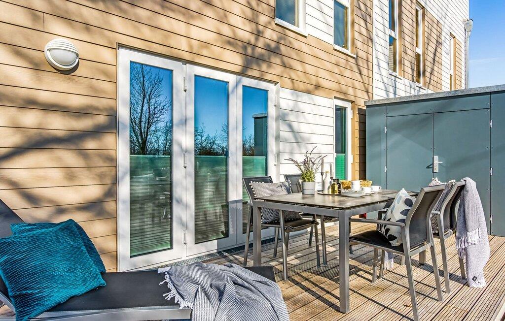 Direkt vom Wohnbereich aus betretet die große Terrasse mit Süd-West-Ausrichtung. Diese bietet erholsame Stunden fernab von dem Trubel des restlichen OstseeResorts. Nach hinten ausgerichtet mit Blick auf die Naturschutz-Salzwiesen, Felder und gen Meer laden die bereitstehenden Gartenmöbel zu erholsamen Urlaubstagen ein. Oder lasst den Tag mit einem gemeinsamen Grillabend ausklingen.
