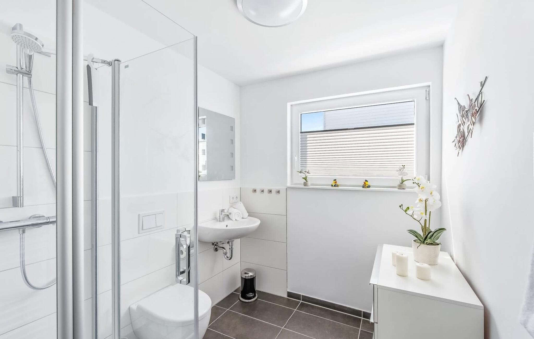 Natürlich fällt auch beim Saunieren oder Zähneputzen der Blick aufs Meer und vorbeischwimmende Schwäne.