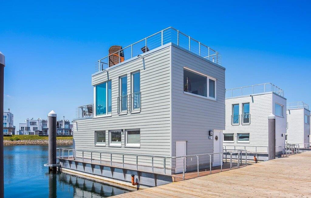 Im hohen Norden liegt dieses Schwimmende Haus im OstseeResort Olpenitz an Ostseefjord Schlei und Ostsee fest am Steg.