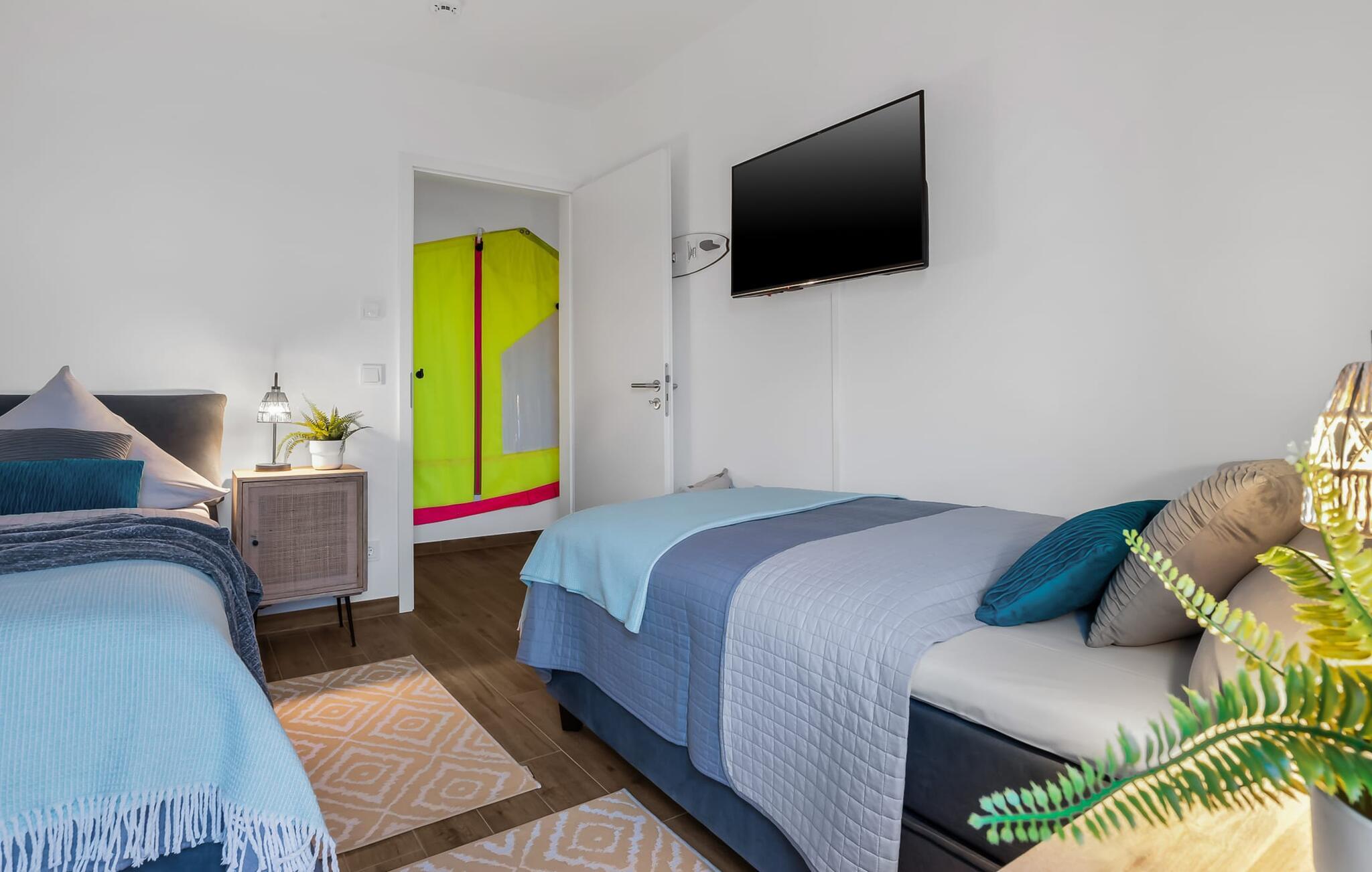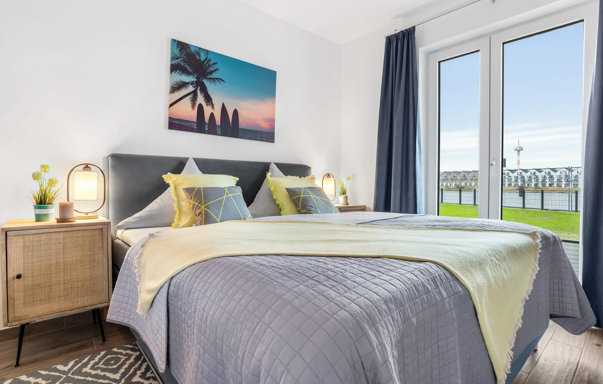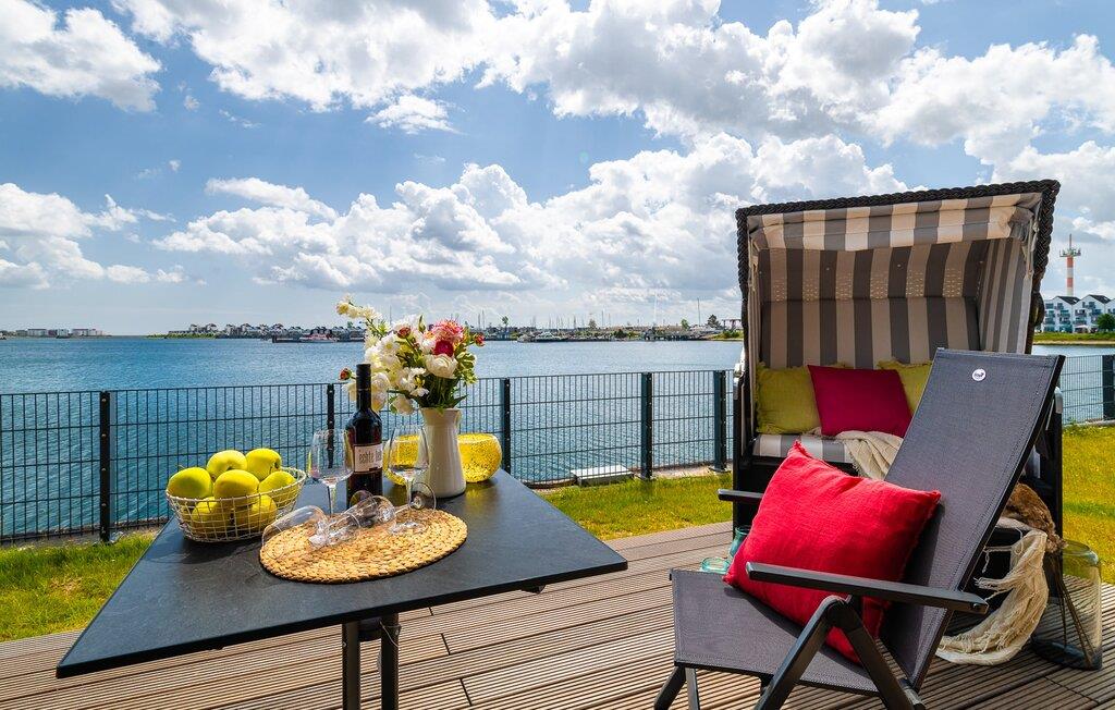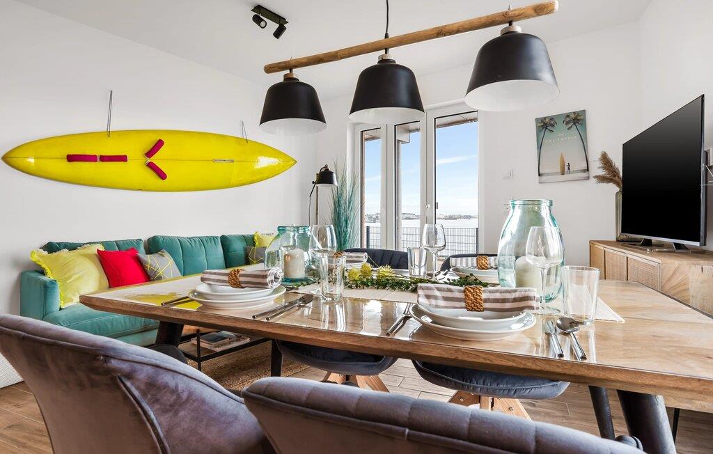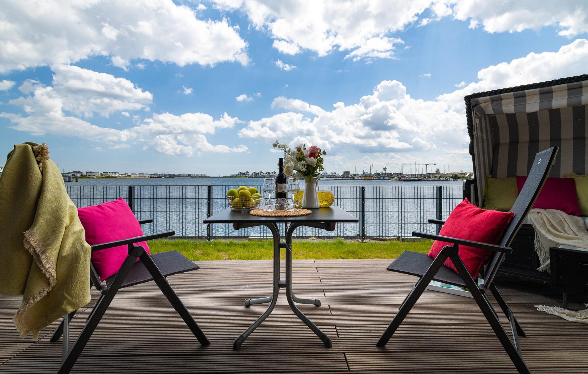 Direkt am Hafenbecken von Olpenitz bietet die Surfers Lounge mit Ostseeblick und Terrasse einen stilvollen Rückzugsort.