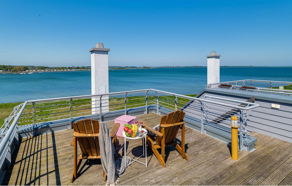 Highlight dieses Ferienhauses ist die Dachterrasse mit Rundum-Wasserblick. Schleitreiben oder Hafenkinophänomenale Aussicht bei ganztags Sonne ist hier garantiert.
