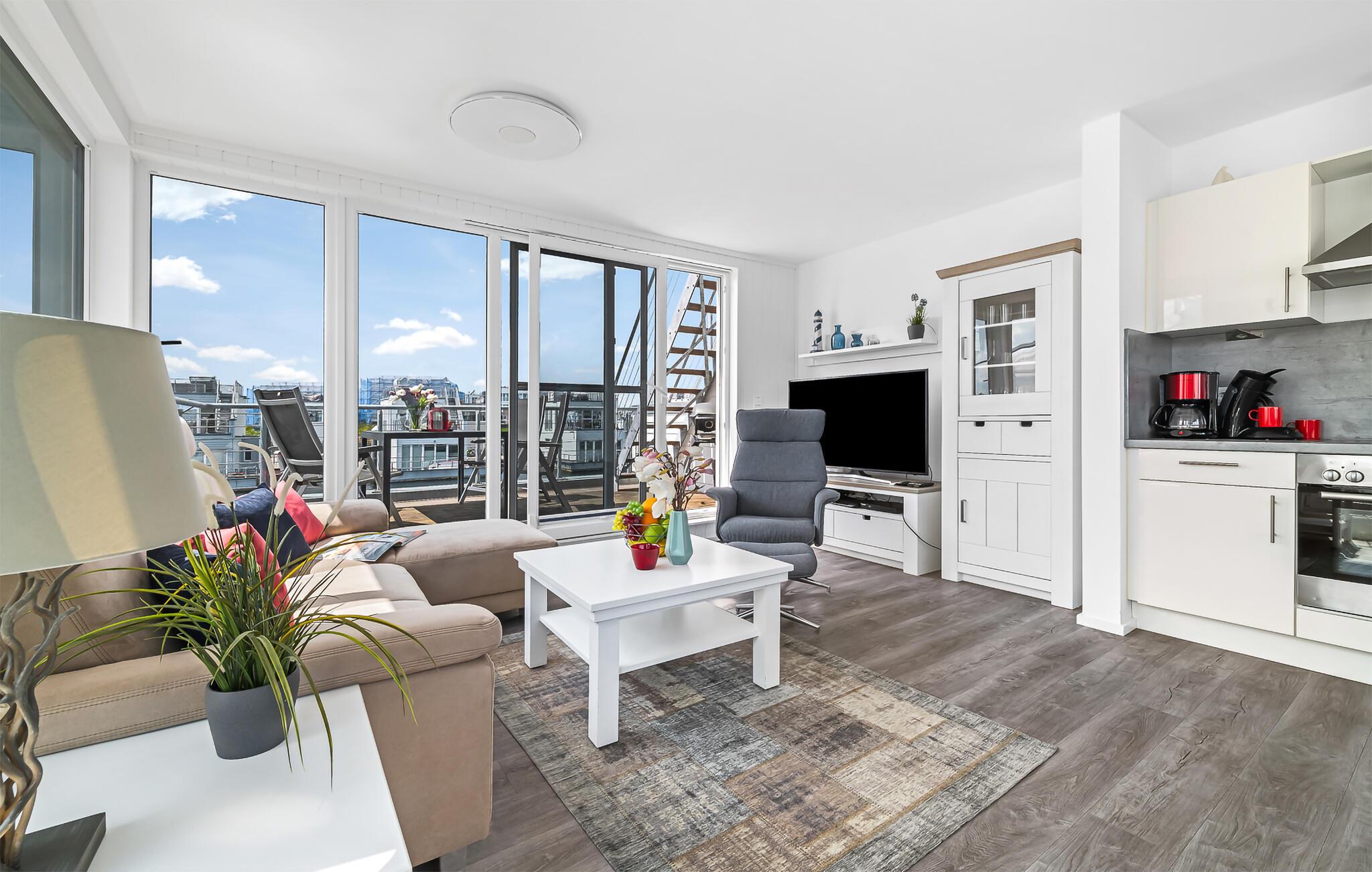 Dieses außergewöhnliche Urlaubserlebnis lädt euch dazu ein, die Langsamkeit des Lebens zu genießen, umgeben von der endlosen Weite des Meeres. Durch bodentiefe Panorama-Fensterfronten erstreckt sich vor euren Augen eine atemberaubende Kulisse, während die Dachterrasse mit 360-Grad-Blick auf Schlei, Ostsee und den Segel- und Sportboothafen spektakuläre Ausblicke verspricht.