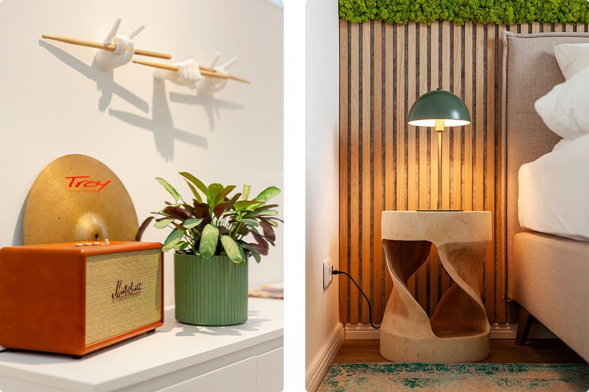In dieser Ferienwohnung steht alles im Zeichen des legendären Drummers Mikkey D. von Motörhead / Scorpions – der Name ist Programm! Hier geben die Drums den Ton an: Drumsticks zieren die Wände, und eine Trommel dient als stylischer Couchtisch. Sogar die Standleuchte ist aus einer Trommel gefertigt und schafft eine rockige, aber gemütliche Atmosphäre. Ein perfekter Ort für alle, die den Rhythmus lieben und sich von diesem coolen Drummer-Style inspirieren lassen möchten!
