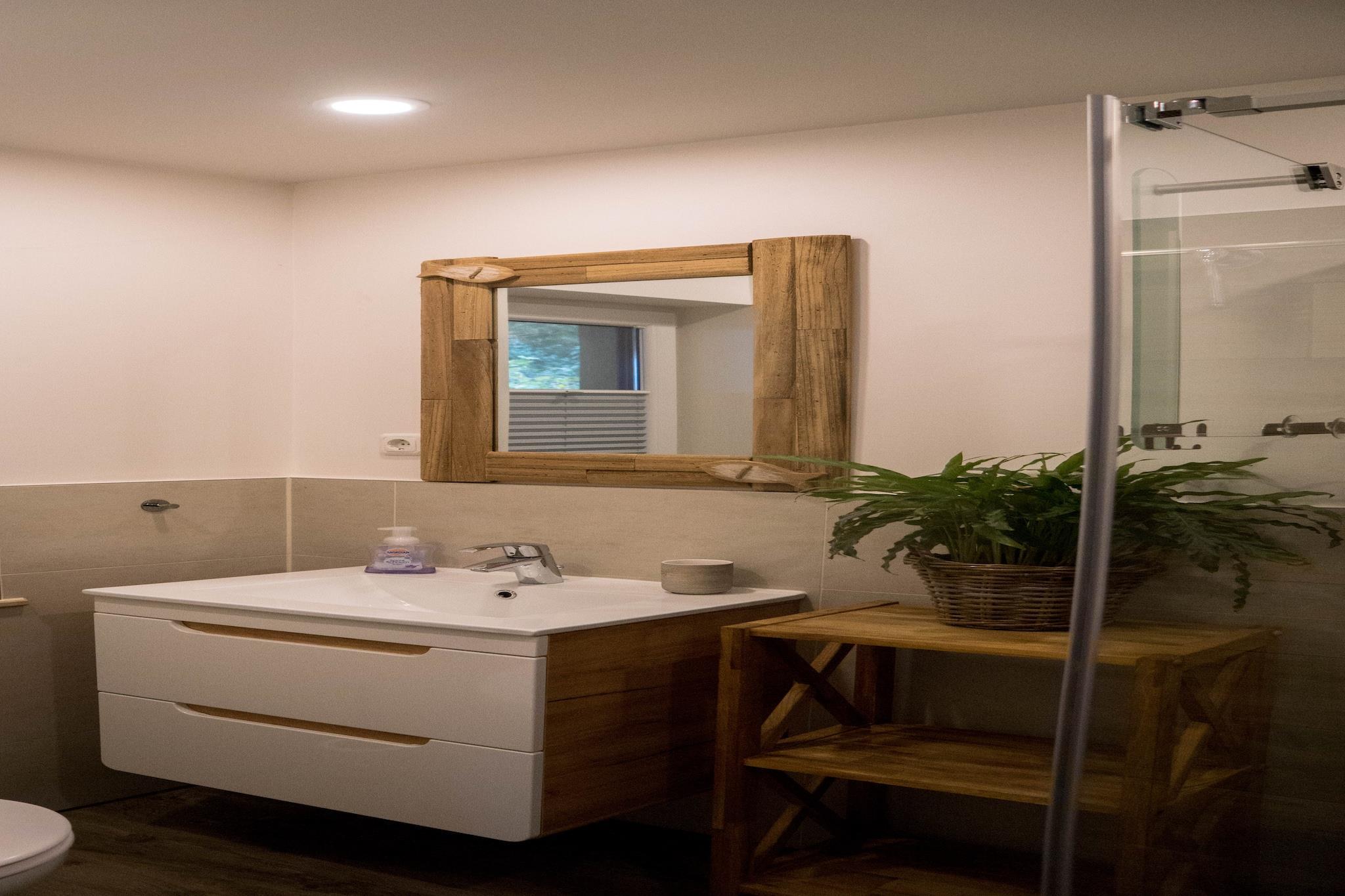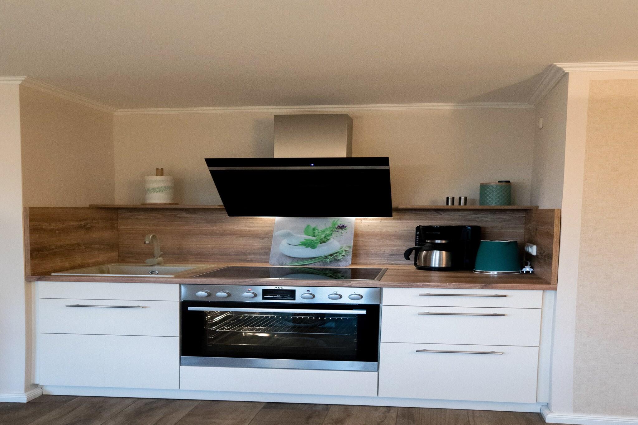 Parterre: (offene Küche(Wasserkocher, Toaster, Kochherd(4 Kochplatten), Kaffeemaschine, Backofen, Mikrowelle, Kühlschrank(+ Gefrierfach)), Wohn-/Schlafzimmer(Doppelschlafcouch, TV(Flatscreen), Esstisch, Kaminofen, Herd(Holz), Radio), Schlafzimmer(Doppelbett king size(180 x 200 cm)), Badezimmer(Dusche, Waschbecken, Toilette), Veranda) Freizeitraum, Heizung, Terrasse, Garten, Fahrradabstellraum, Gartenmöbel, Grill, Parkplatz, Liegestühle, Gesellschaftsspiele
