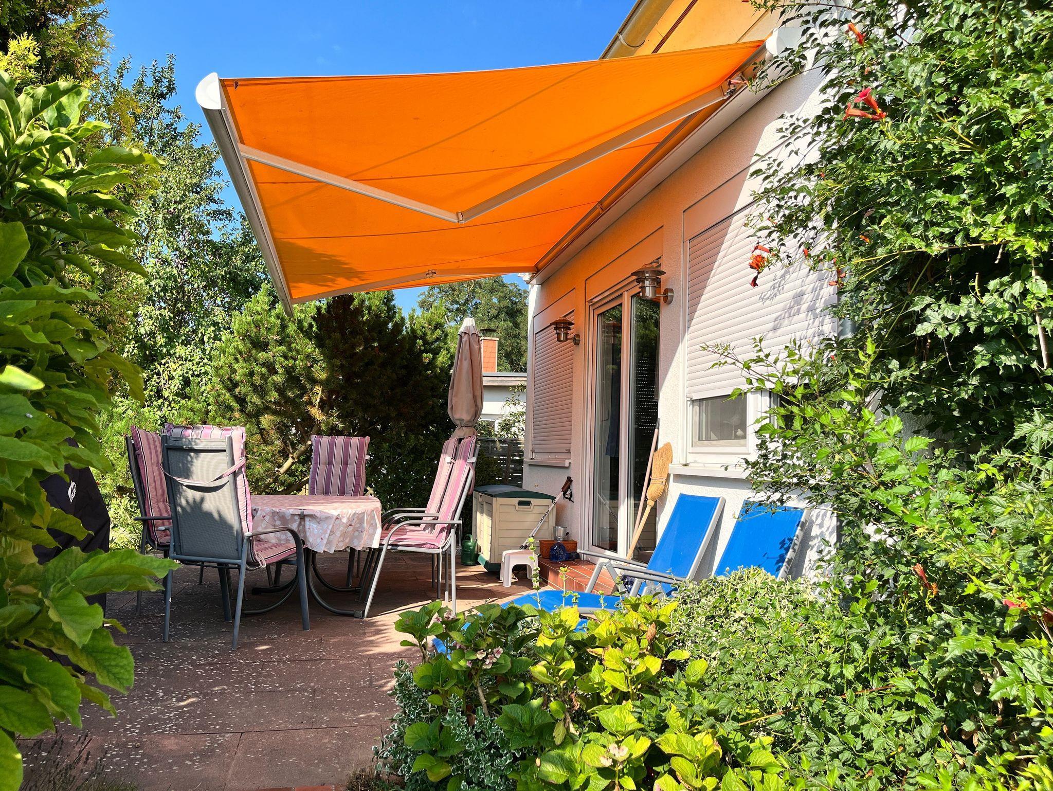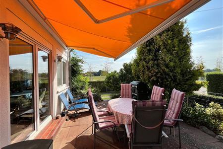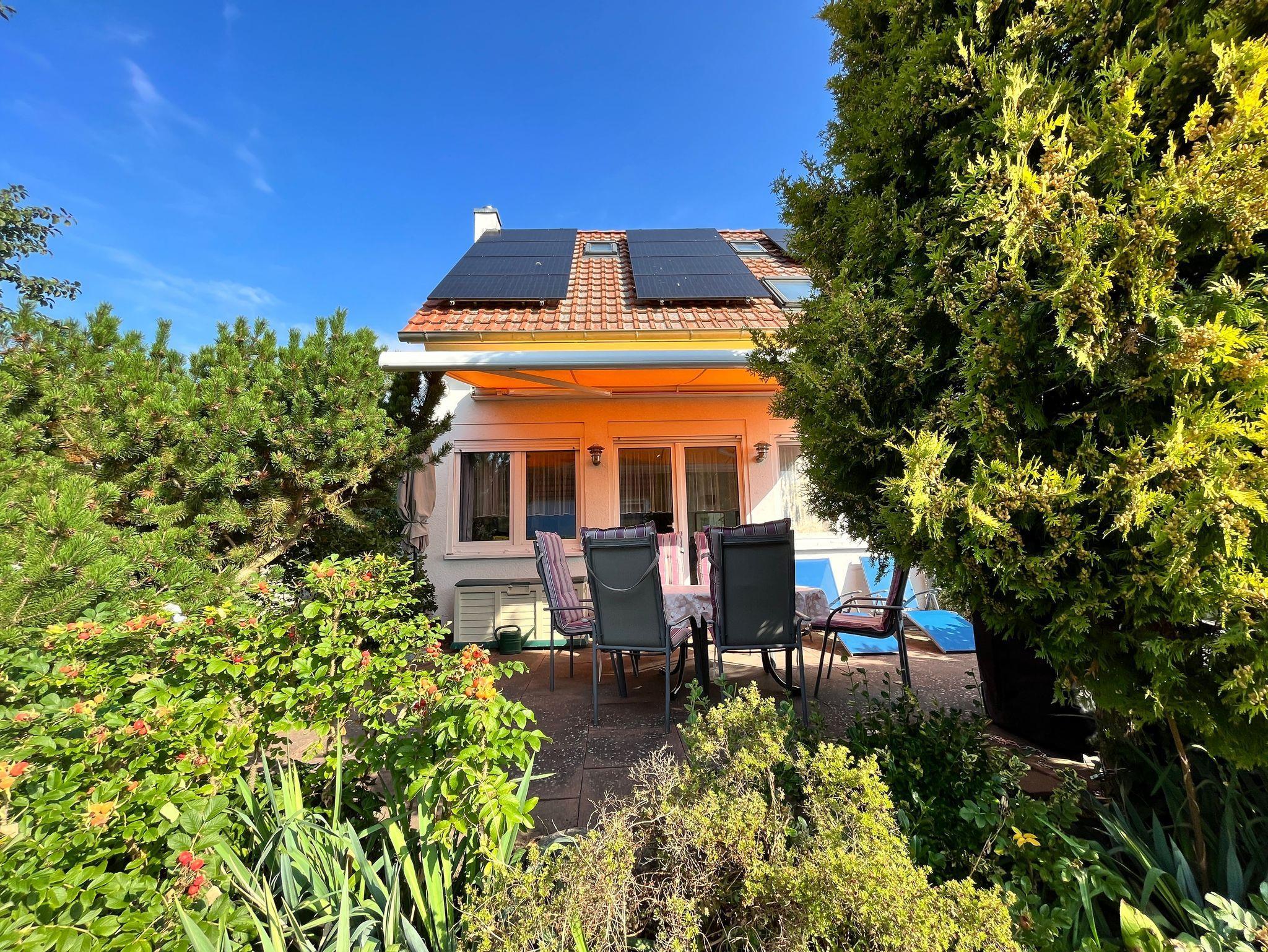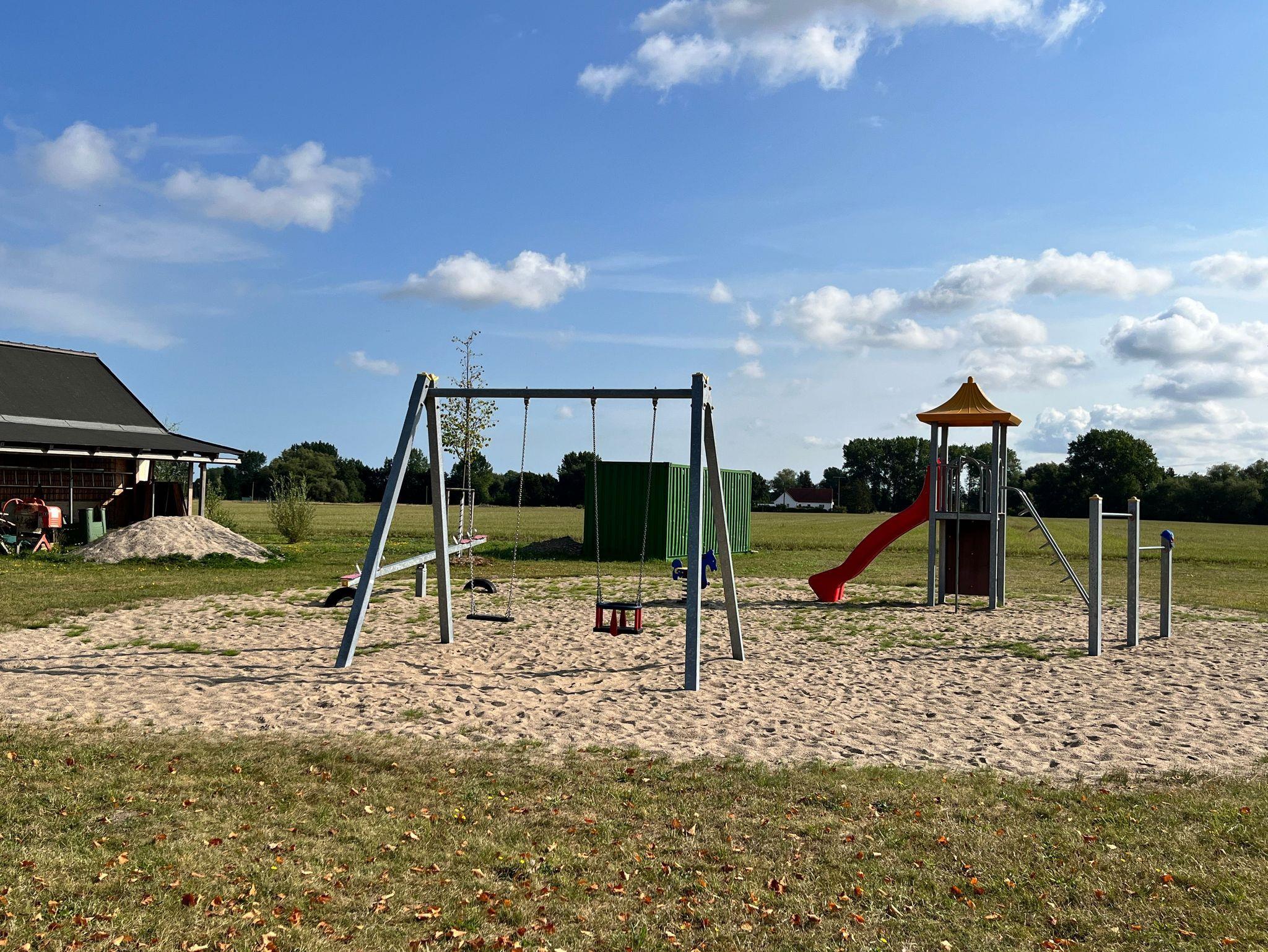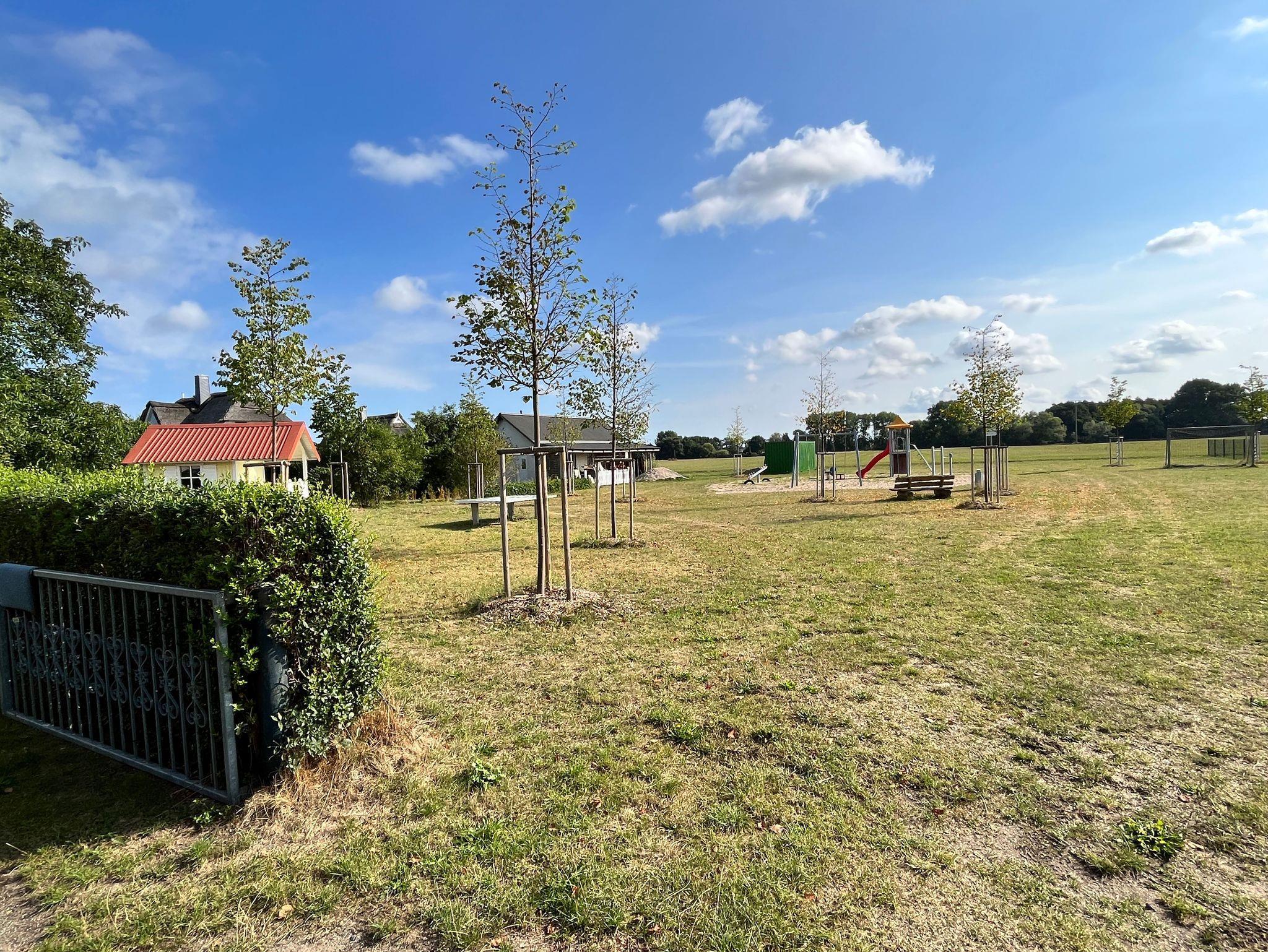 Terrasse möbliert, Grill, Sonnenliegen, Spielplatz und Spielwiese grenzen am Grundstück an