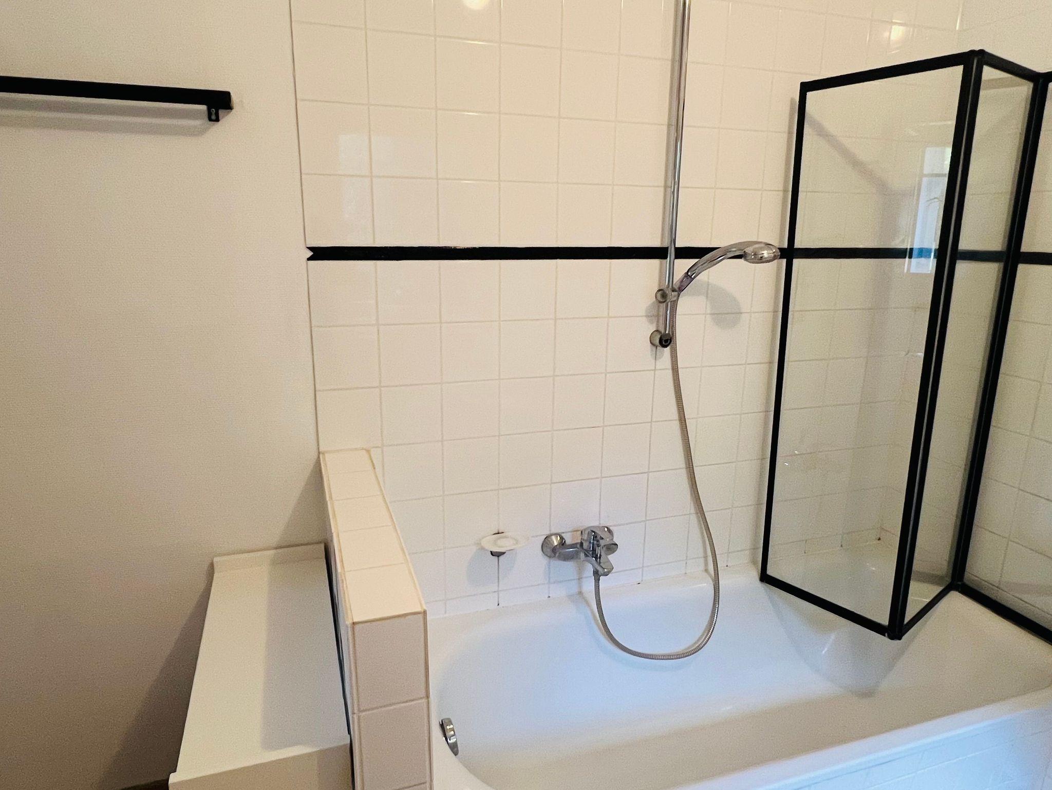 Das Badezimmer verfügt über eine Wanne, WC und Waschmaschine, es ist zusätzlich ein Gäste- WC vorhanden.