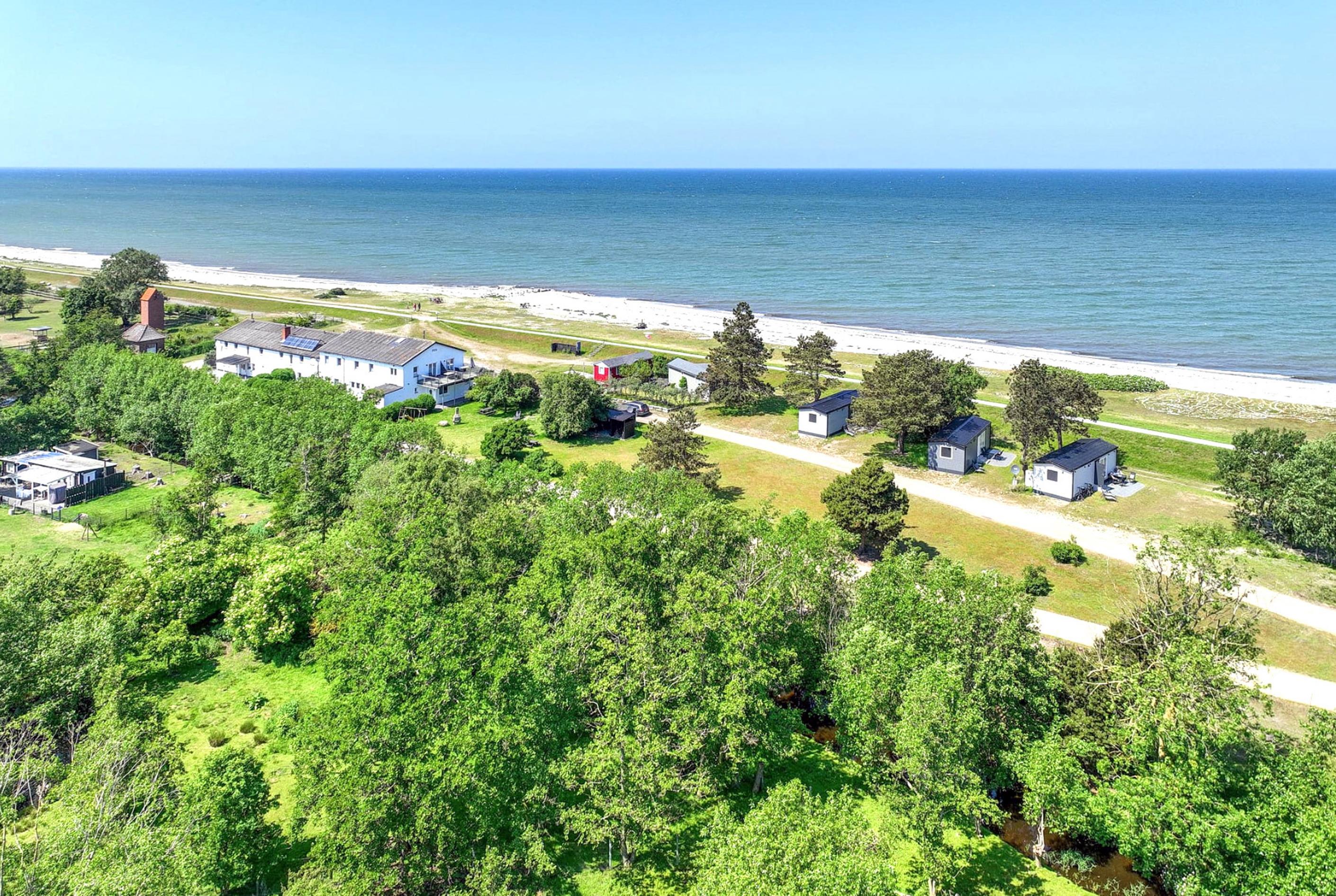 Am Strand des Gutes Teichhof erwartet Sie das Tiny House "Humboldt" für Ihren entspannten Urlaub am Meer. Dieses charmante Strandhaus hat Platz für bis zu 2 Erwachsene und 2 Kinder und bietet einen atemberaubenden Blick auf das Meer. Genießen Sie die Behaglichkeit eines Doppelbettes im Schlafzimmer sowie des eigenen Badezimmers mit Dusche. Die Wohnküche lädt zu gemeinsamen Kocherlebnissen ein und ist mit modernen Annehmlichkeiten wie einer Filterkaffeemaschine, Mikrowelle und Spülmaschine ausgestattet. An sonnigen Tagen lädt Ihre private 15 m2 große Terrasse im Garten zum Entspannen und Genießen ein. Im Wohnzimmer mit TV, DVD und Musikanlage finden Sie erholsame Stunden der Unterhaltung. Der Strand liegt direkt vor Ihrer Tür und verspricht Momente der Ruhe und Erholung. Überdachte Fahrradabstellmöglichkeiten und Parkplätze für Ihr Auto stehen auf dem Gelände des Gutshofs zur Verfügung. Die einzigartige Lage des Teichhofs ermöglicht es Ihnen, die idyllische Natur zu erkunden, während Sie zugleich von der Nähe zu zwei Restaurants und der nächsten Stadt profitieren, die nur 5 Kilometer entfernt liegt und eine Vielzahl von Einkaufs- und Restaurantmöglichkeiten bietet. Zum Be- und Entladen können Sie gerne direkt am Strandhaus halten. Das Check-in erfolgt bequem eigenständig. Auf dem Gelände des Teichhofes erwartet Sie zudem ein Streichel-Zoo mit Schafen und eine Wiese mit Ponys. Das Tiny House James Cook bietet somit die ideale Kombination aus Ruhe und Erholung sowie der Nähe zu verschiedenen Aktivitäten und Annehmlichkeiten für einen unvergesslichen Urlaub.