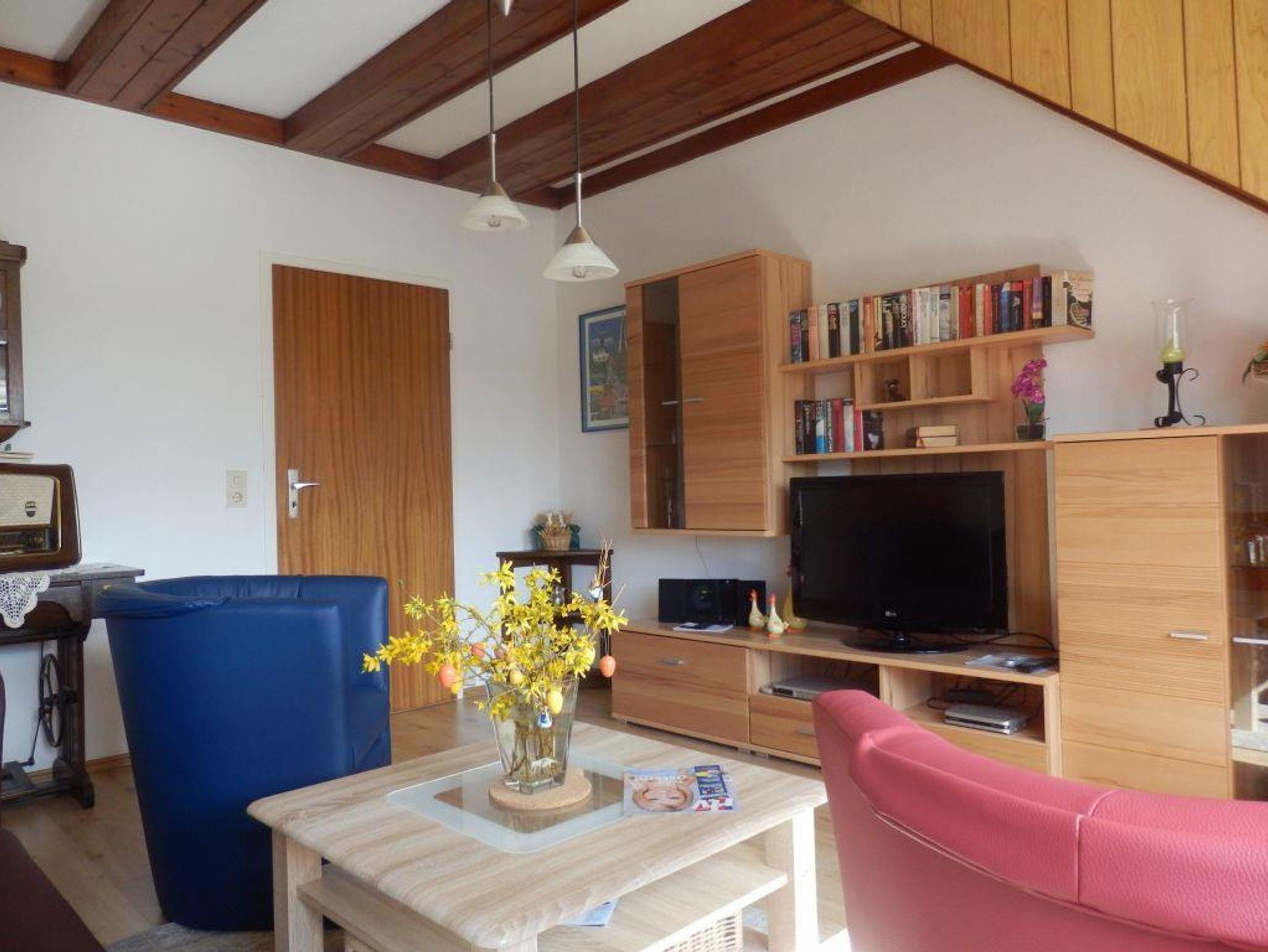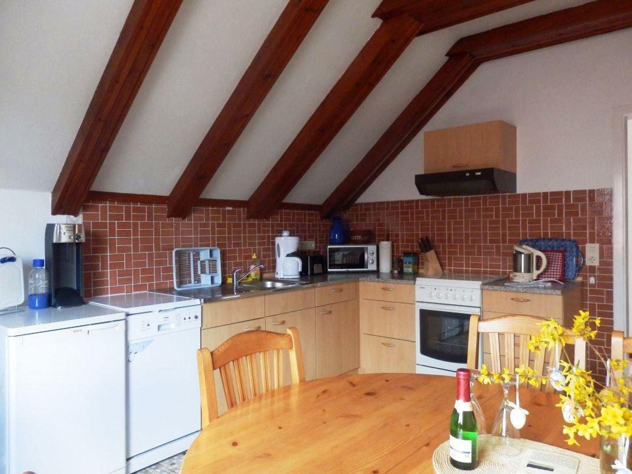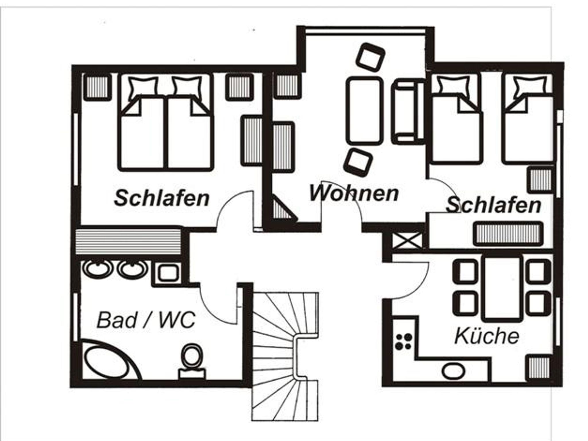 Ausstattung Innen Extras Fliegenschutz, Heizung Schlafbereich 1 Doppelbett, zwei Einzelbetten, ein Gästebett, Bettwäsche vorhanden Küche und Haushaltsgegenstände 4-Plattenherd, Backofen, Dunstabzugshaube, Mikrowelle, Kaffeemaschine, Kühlschrank mit Gefrierfach, Toaster, Wasserkocher, Eierkocher, Esstisch mit 5 Stühlen Bad und Sanitär Duschbad, Eckbadewanne, zwei Waschplätze, WC, Handtücher vorhanden, Wäscheständer, Fön , Unterhaltung und Kommunikation Flachbild-Fernseher, Sat-TV, DVD-Player, Stereoanlage mit CD-Player, diverse Bücher Aufteilung Personen max. 4 Zimmer · 1 großes Wohnzimmer · 1 Schlafzimmer mit Doppelbett · 1 Schlafzimmer mit zwei Einzelbetten · 1 Einbauküche mit großem Essbereich · 1 großes Badezimmer · 1 Flur