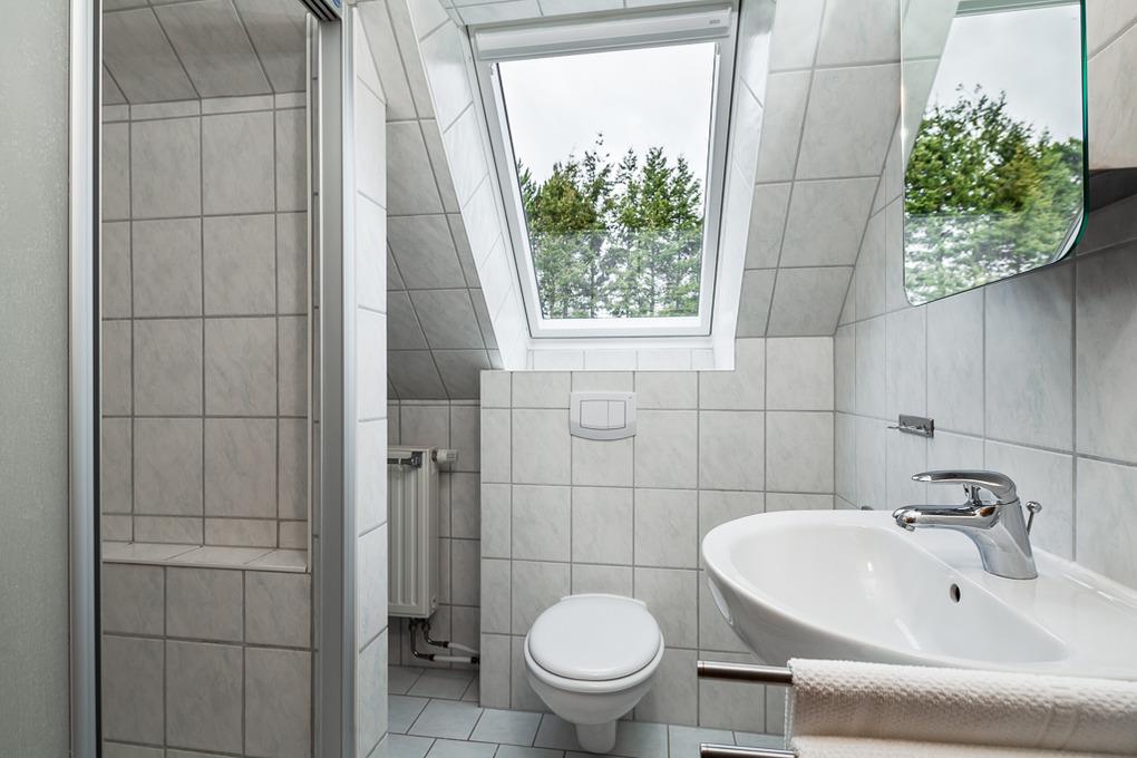 Zusätzlich verfügt das Ferienhaus Schäferhund über ein Bad mit Dusche.