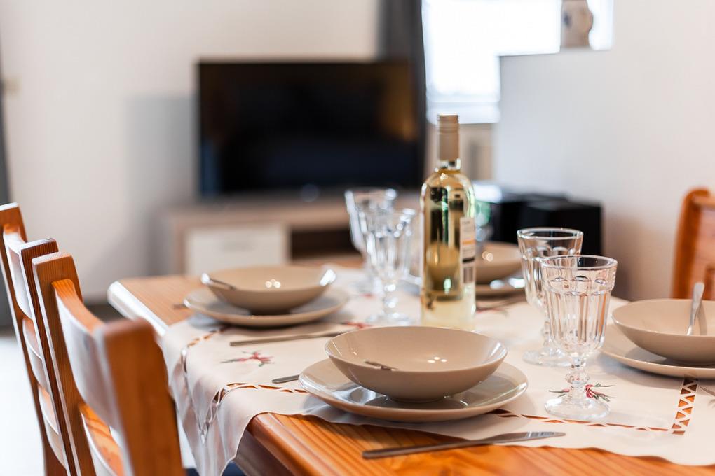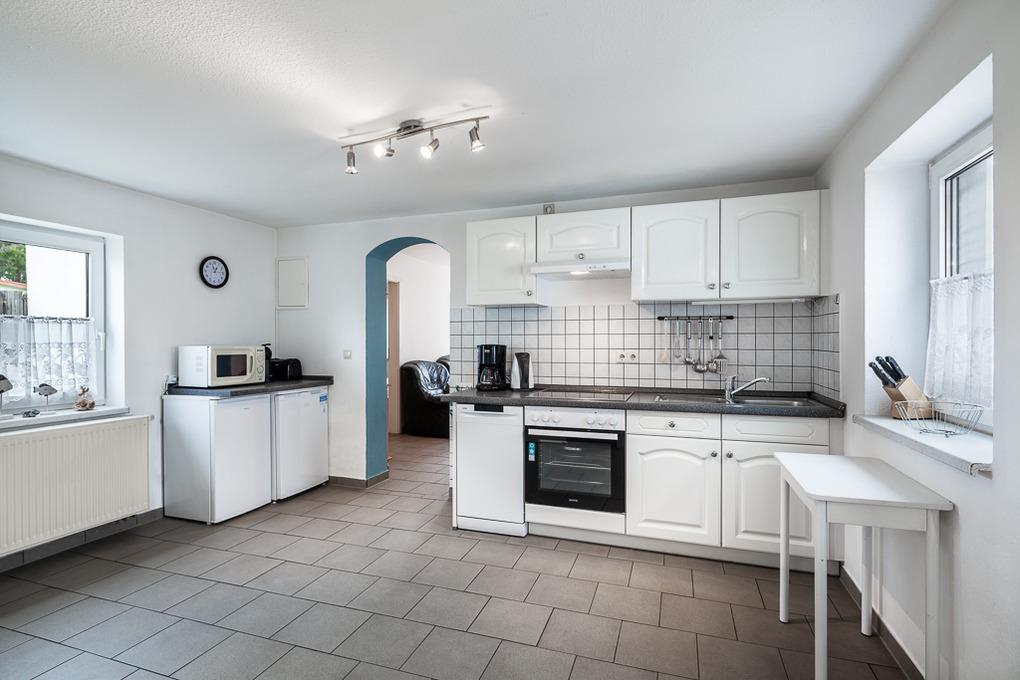 Eine offene Küche mit Essbereich ergänzen den Wohnbereich. Die Spülmaschine erledigt für Sie den Abwasch, während Sie am Strand den Sonnenuntergang genießen können.