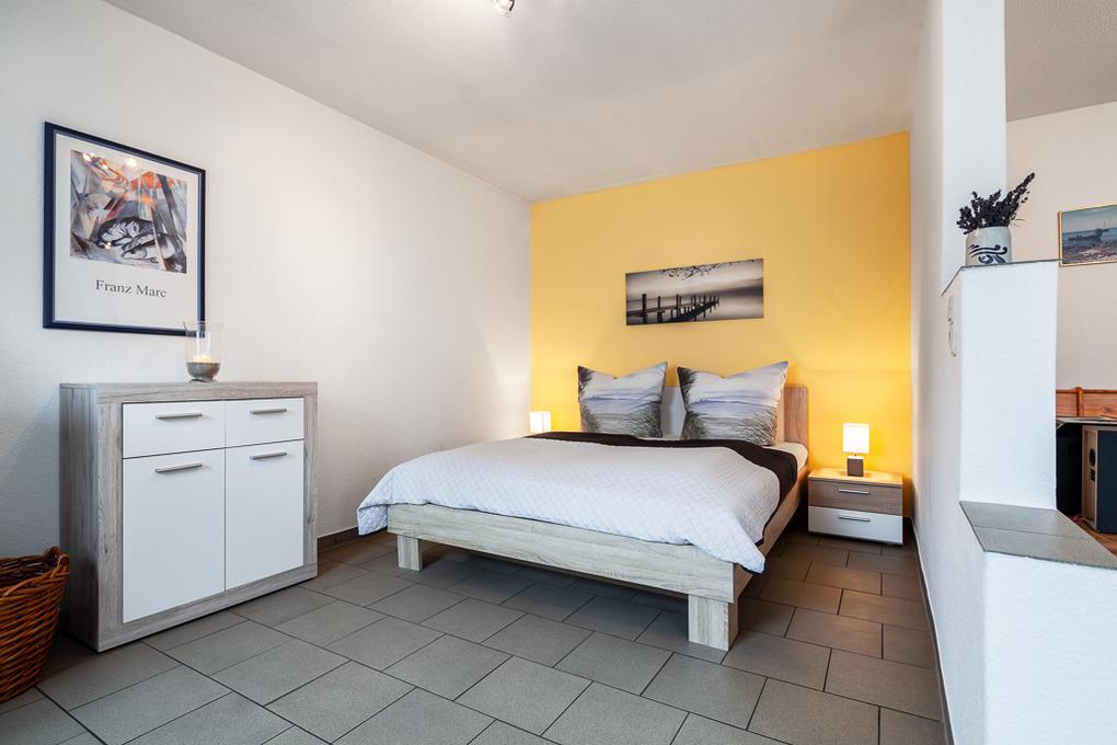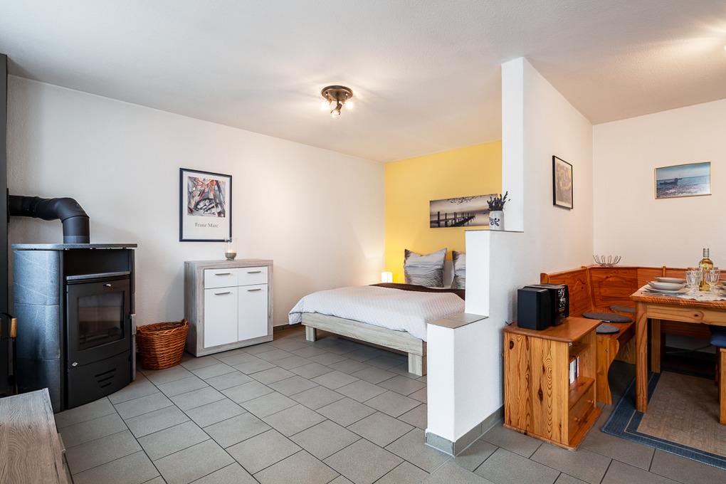 Eine weitere Schlafgelegenheit 160cmx200cm Doppelbett abgetrennt durch einen gemauerten Raumteiler ist im Wohnbereich integriert.