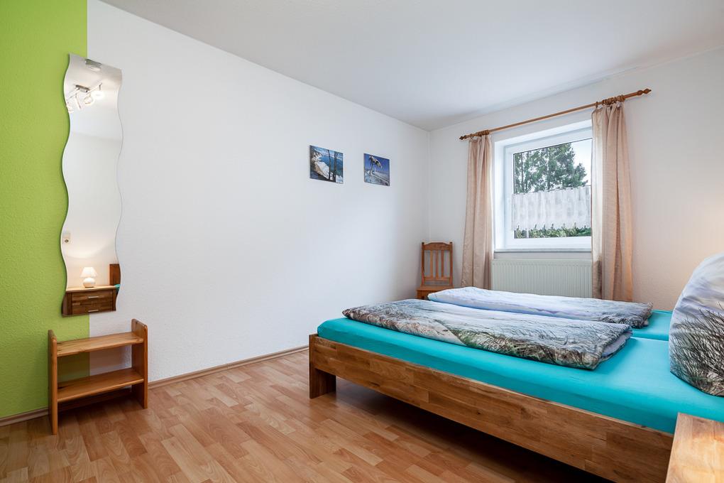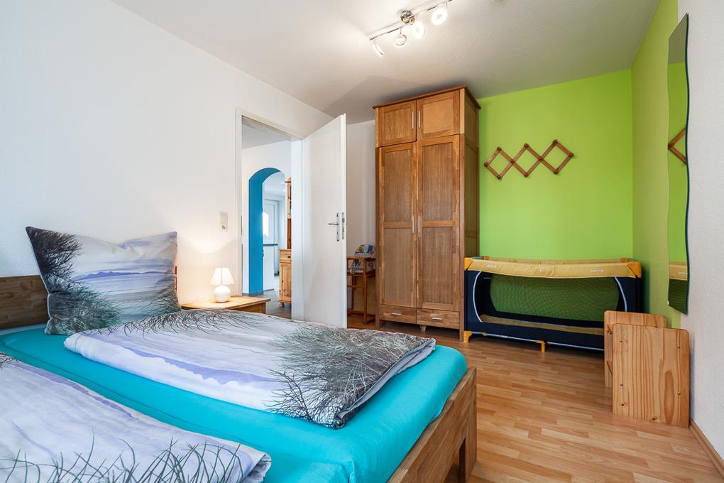 Das Elternschlafzimmer besitzt ein Doppelbett mit den Maßen 180cmx200cm.