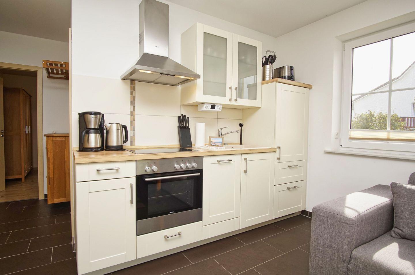 KÜCHE // offene Küche, 4-Platten Cerankochfeld, Spülmaschine, Kühlschrank mit Gefrierfach, Backofen, Toaster, Wasserkocher, Kaffeemaschine, reichlich Besteck, Geschirr und Küchenutensilien ++
