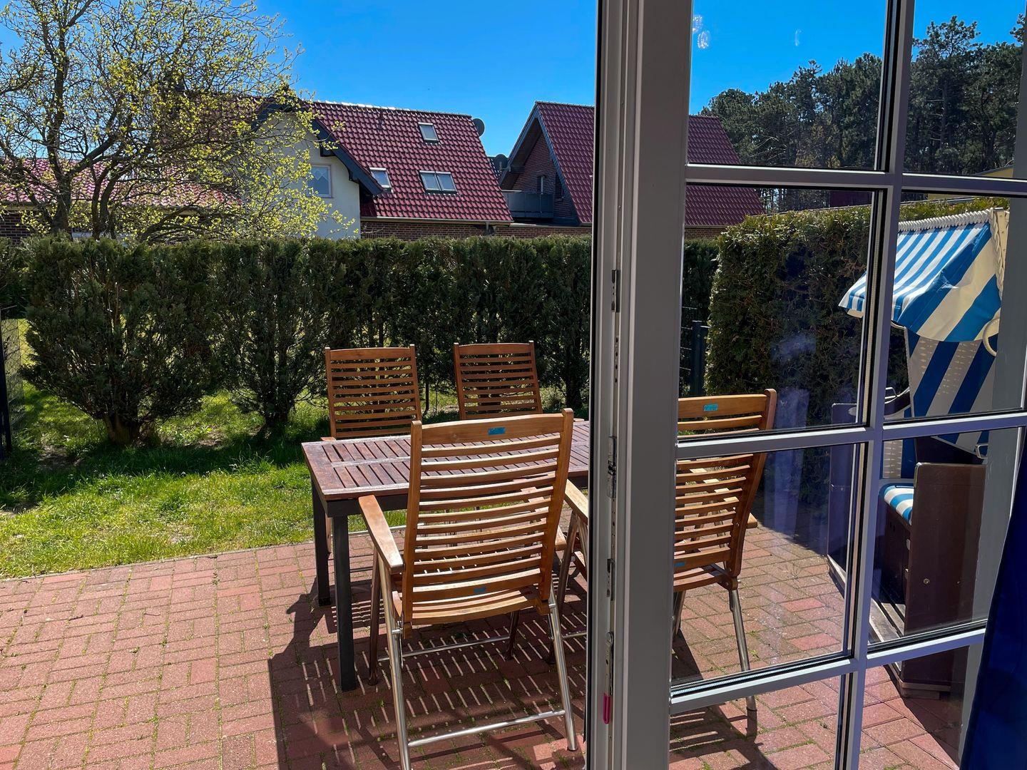 Es besteht ein direkter Zugang zu Ihrem eigenem Gartenbereich, der durch einen 1,20m hohen Zaun begrenzt ist.