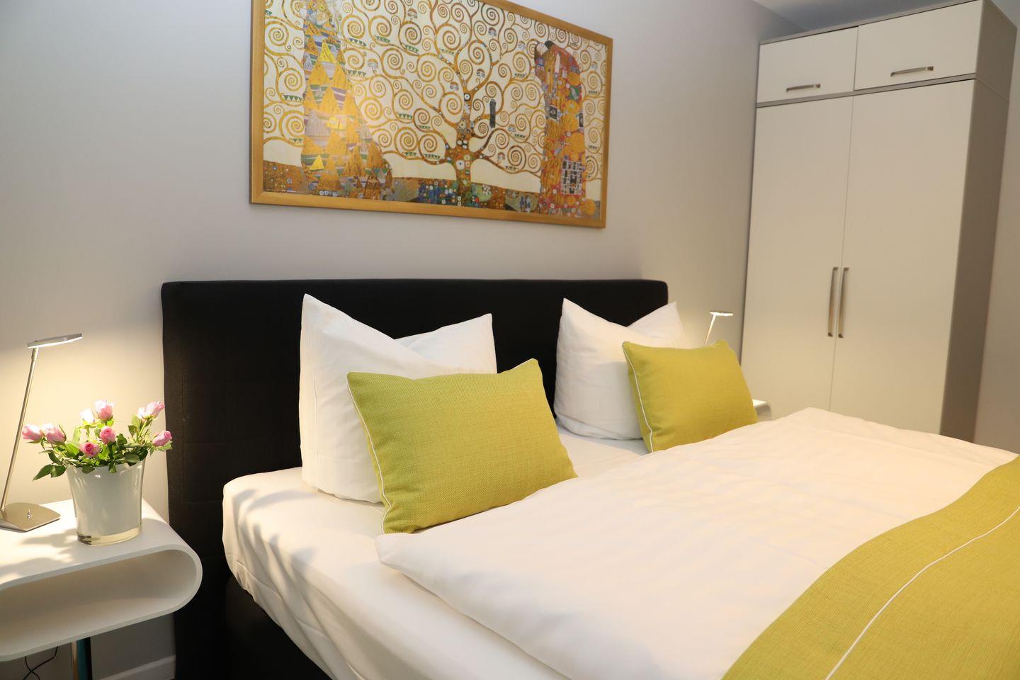 Im Schlafzimmer läd ein hochwertiges Boxspringbett zu Entspannung und erholsamen Schlaf ein. Gratis Kinderbett mit Matratze vorhanden.