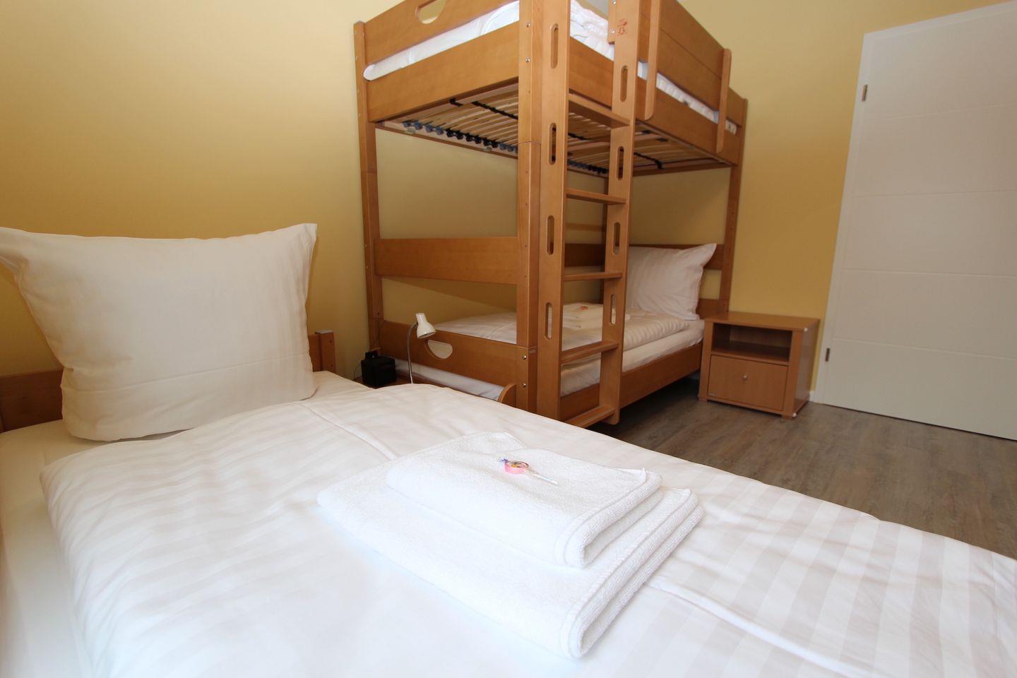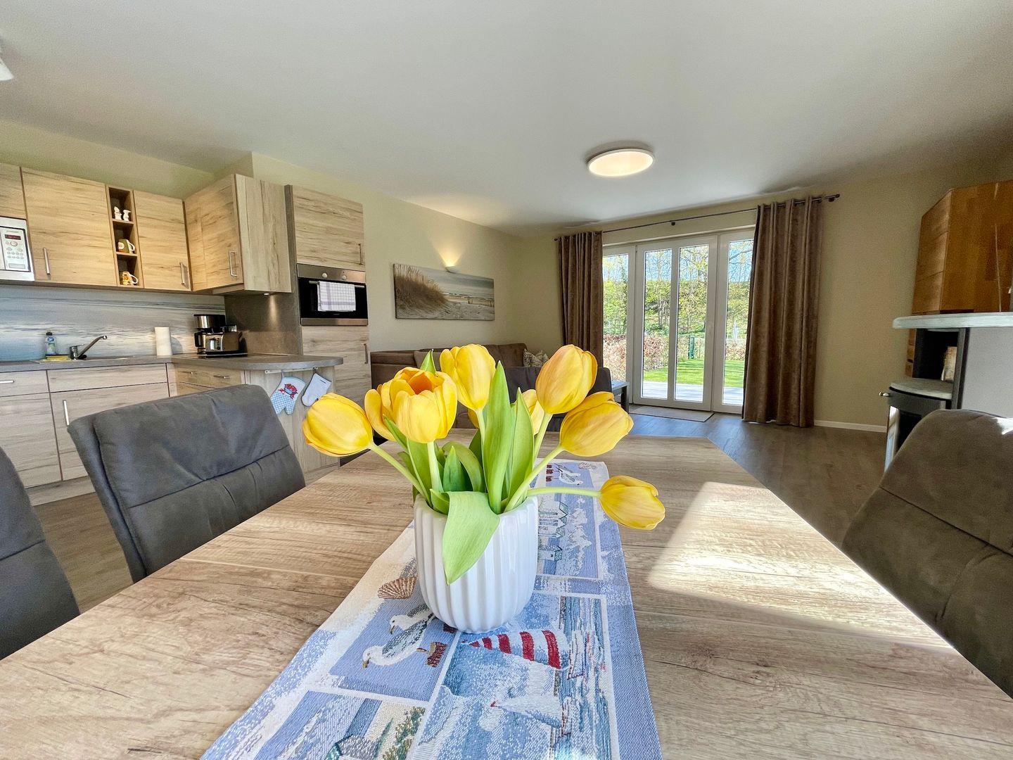 Die Wohnung verfügt über fast 90qm und bietet Platz für 2Erwachsene und 3Kinder. Eine bequeme Doppelschlafcouch im Wohnzimmer kann als Aufbettung dienen. Das Wohnzimmer ist mit einer offenen Küche, einem großen Essbereich vor dem Kamin, gemütlicher Sofalandschaft und einem Flachbild-TV ausgestattet. Zwei große bodentiefe Fenster bringen den ganzen Tag viel Licht rein und bieten einen herrlichen Blick in den Garten. Eine angenehme Ruhe finden Sie in zwei separaten Schlafzimmern, für die Eltern – mit einem Doppelbett und großem Kleiderschrank, und für die Kinder – mit einem Doppelstockbett und einem Einzelbett inklusive einer Spielecke. Das moderne Tageslichtbad verfügt über eine Dusche und WC. Genießen Sie gemütliche Grillabende mit der gesamten Familie auf einer der zwei wunderschönen Terrassen.