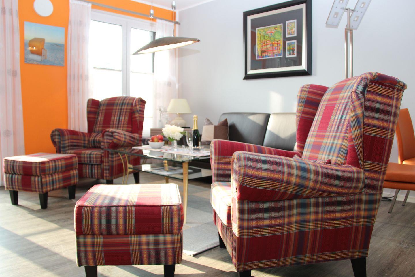 Sie bietet auf 75 qm Platz für 4 Personen und hat eine große Südwest Terrasse.
