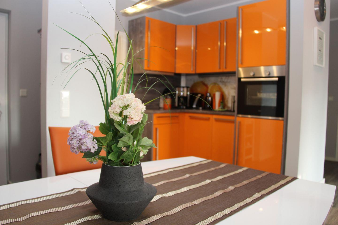 Ein Flachbildfernseher mit Sky-TV, eine elegante Design-Sitzecke in diesem modernen Apartment sorgen für Komfort. In der komplett ausgestatteten Küche können Sie Ihre Mahlzeiten selbst zubereiten. Ein Geschirrspüler, ein Cerankochfeld, eine Mikrowelle ,ein Backofen sowie Tee-/Kaffeezubehör sind vorhanden.