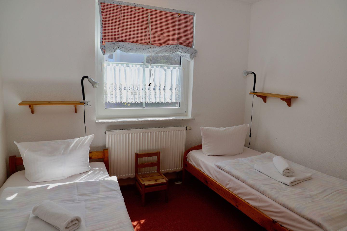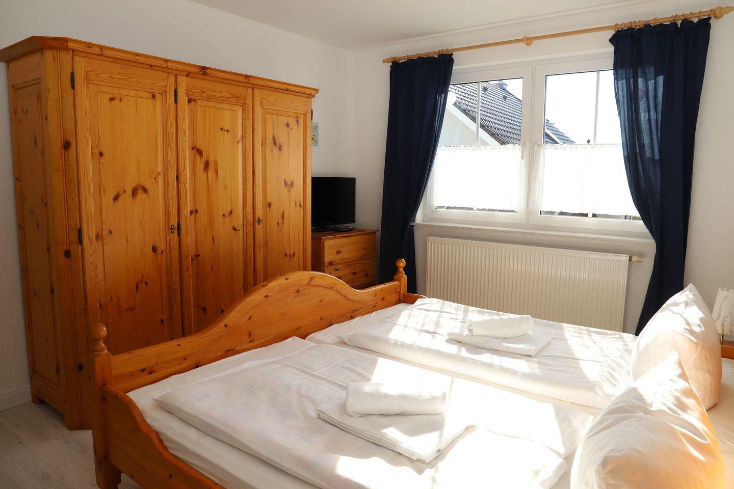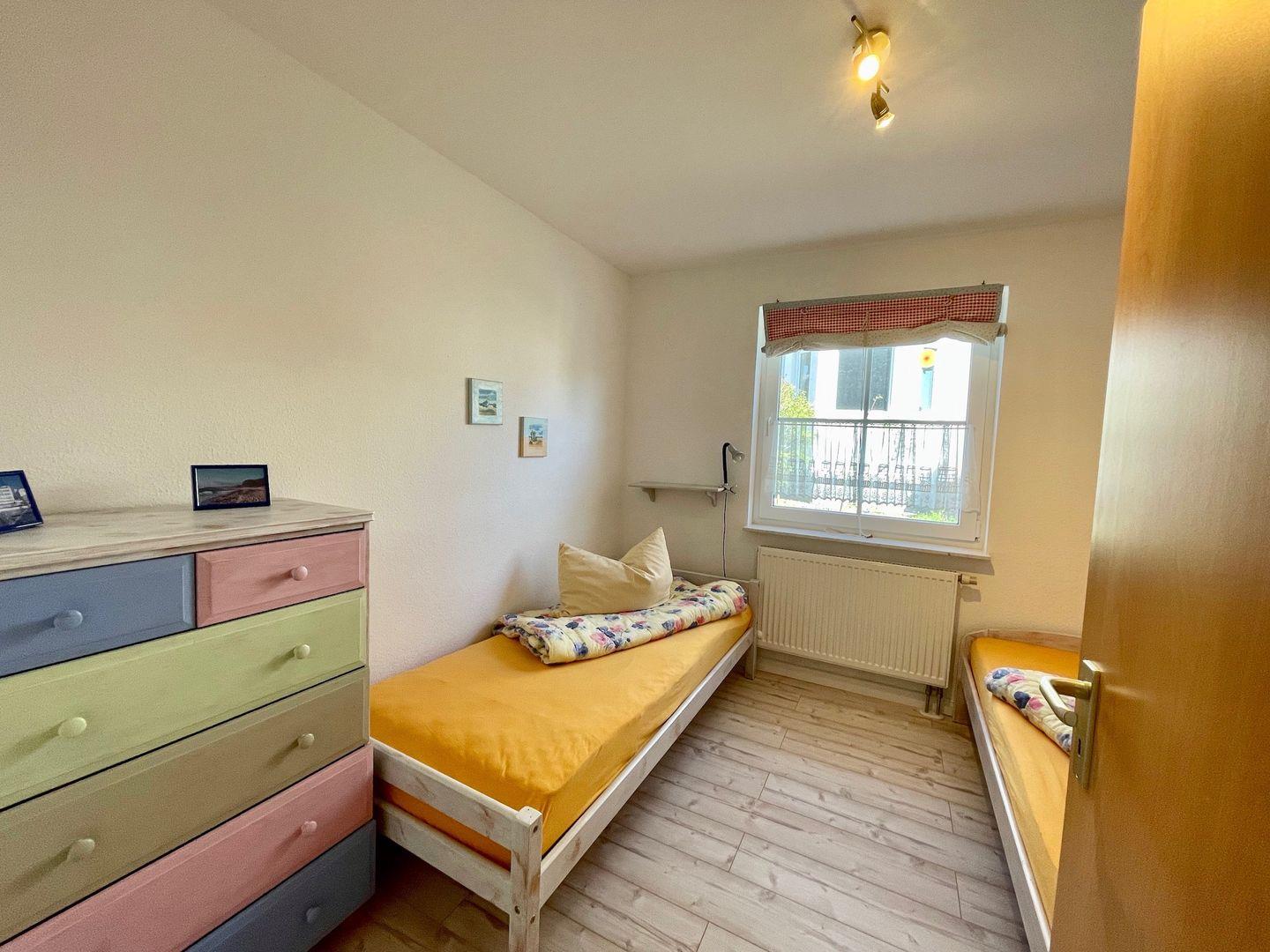 In einem Schlafzimmer finden ein bequemes Doppelbett und der Kleiderschrank ausreichend Platz. In dem anderen: zwei Einzelbetten und zwei goßen Kommoden..
