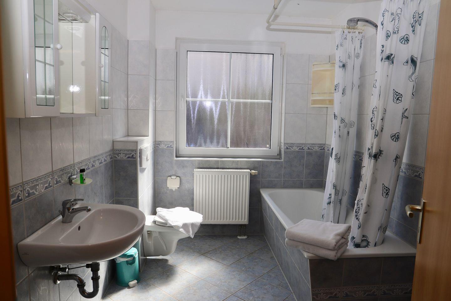 Hell, funktional und großzügig präsentiert sich auch das Tageslicht-Bad mit der Badewanne. Hier kommt man mit guter Laune frisch in den Tag.