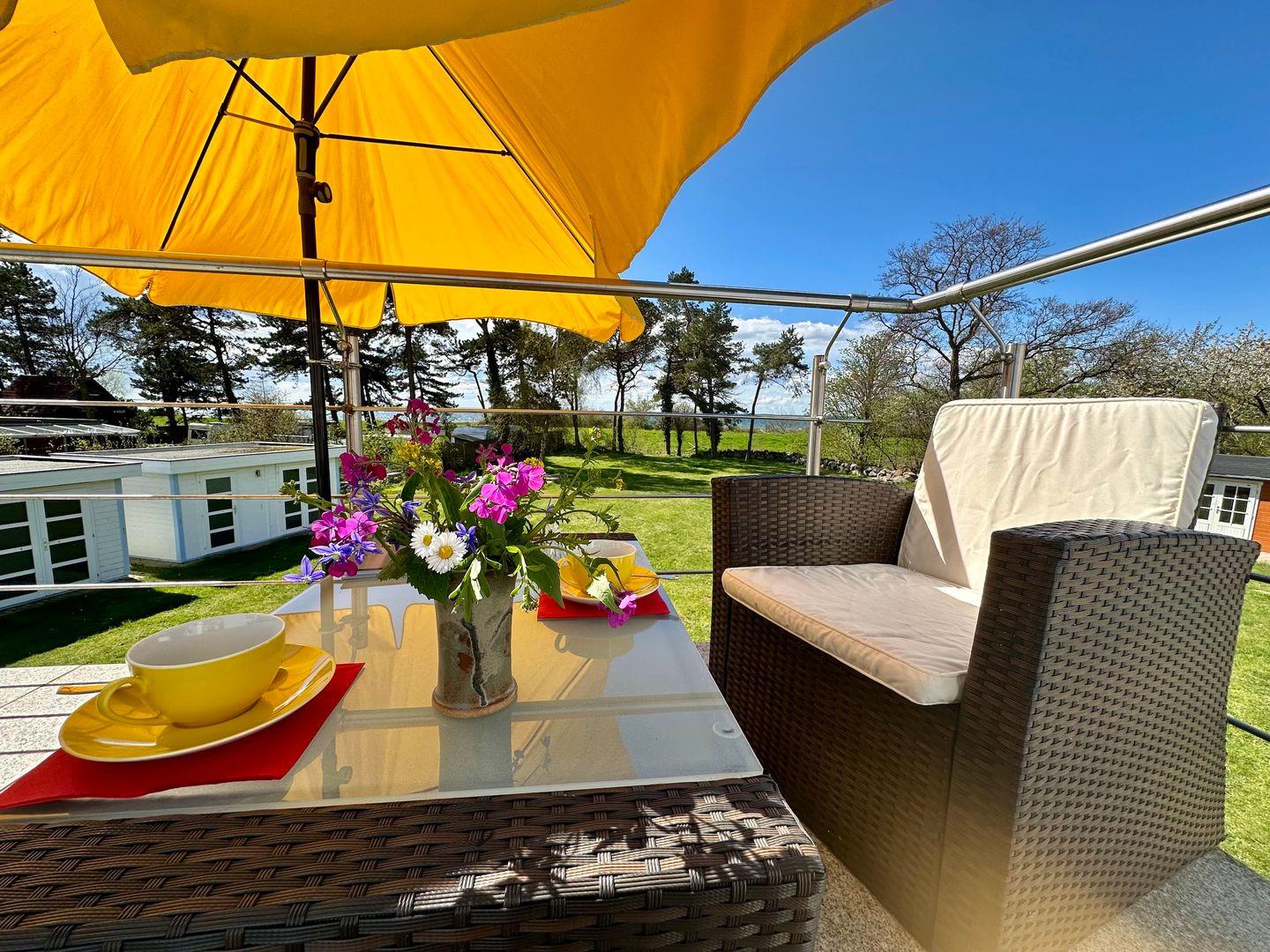Gemütliches Apartment mit Meerblick, Balkon, Kamin und moderner Küchenausstattung in Toplage, nur 50 Meter vom Strand entfernt.