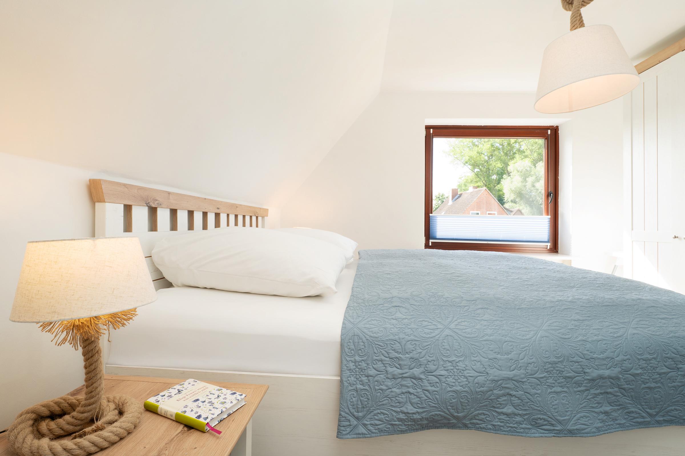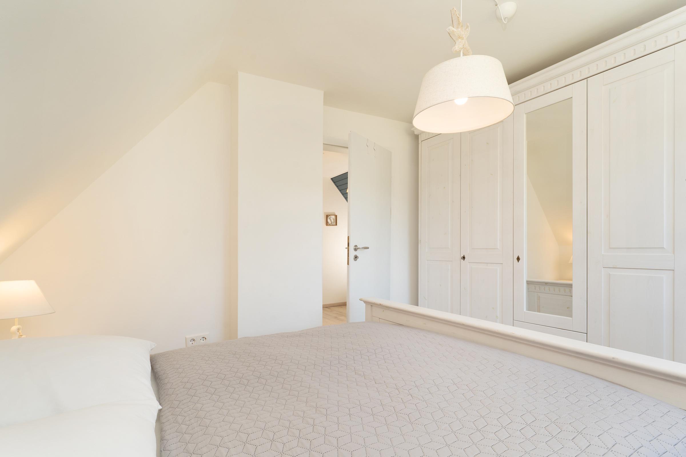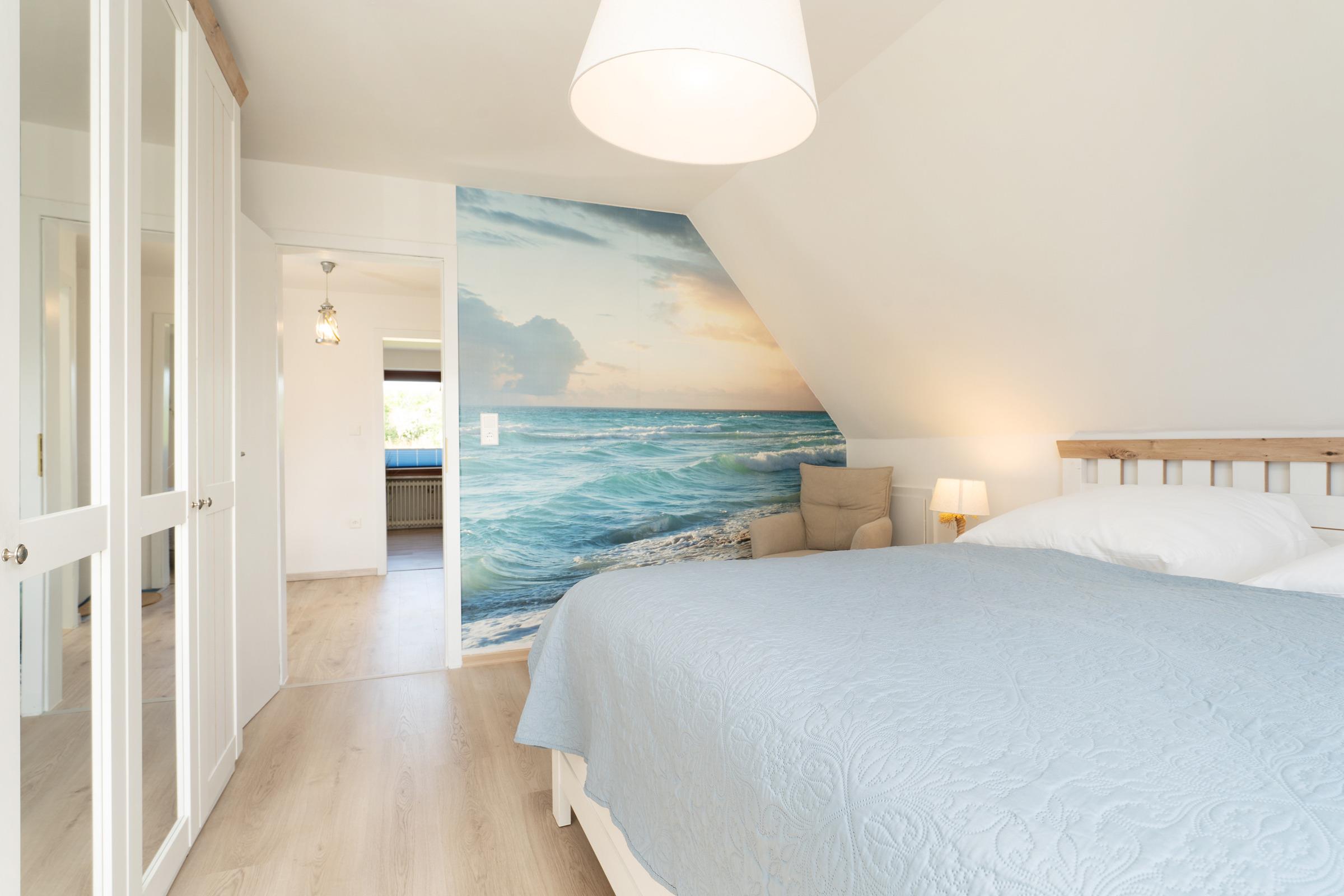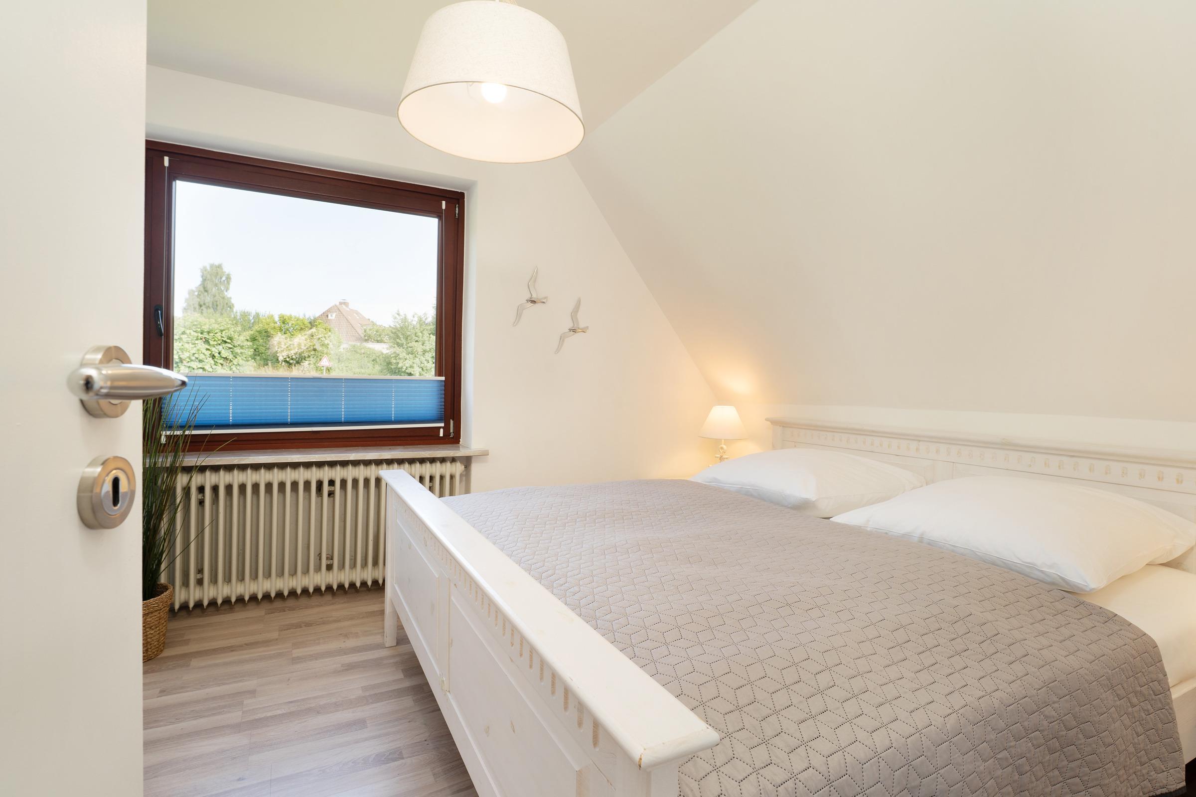 Schlafzimmer 1: 1 Doppelbett (2x 90x200 cm), Kleiderschrank, Verdunkelung: Plissees, Platz für ein Babybett vorhanden