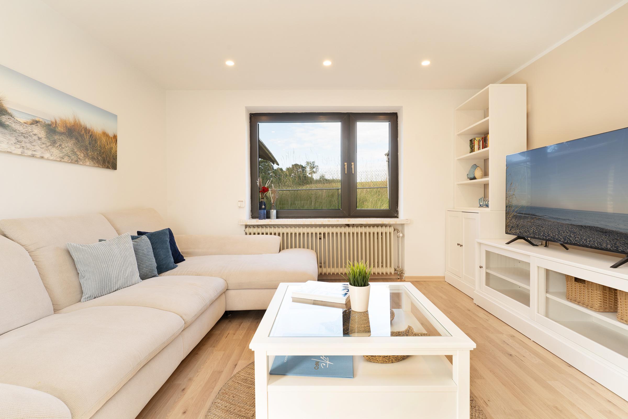 Dieses charmante Ferienhaus lädt zu einem erholsamen Aufenthalt an der Ostsee ein. Im offenen Wohnbereich genießen Sie entspannte Stunden mit Fernseher und Radio. Die großen Fenster schaffen eine helle, freundliche Atmosphäre. Vom Wohnraum gelangen Sie auf die Terrasse, die mit Gartenmöbeln ausgestattet ist und zum Verweilen an der frischen Luft einlädt. Das Haus verfügt über einen eingezäunten Garten mit eigenem Kinderspielplatz. Der wunderschöne Blick über die weiten Felder lädt dazu ein Pläne für ausgedehnte Spaziergängen und Radtouren zu schmieden.
