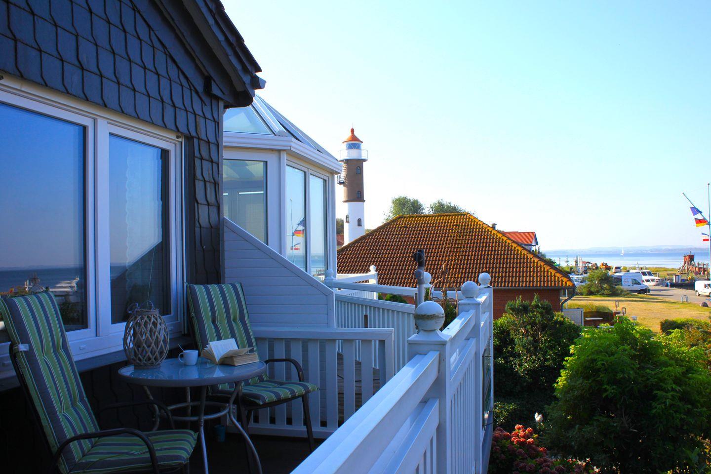 Moderne Ferienwohnung Knurrhahn auf Poel mit Balkon und traumhaftem Meerblick, nur 50 m vom Strand und Restaurants entfernt.