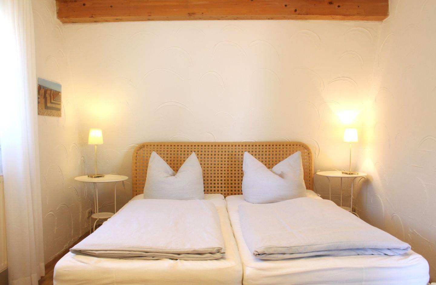 Das Schlafzimmer ist mit einem komfortablem Doppelbett ausgestattet und das angrenzende Badezimmer verfügt über eine Badewanne, Dusche, Waschtisch, WC und einen Handtuchheizkörper.