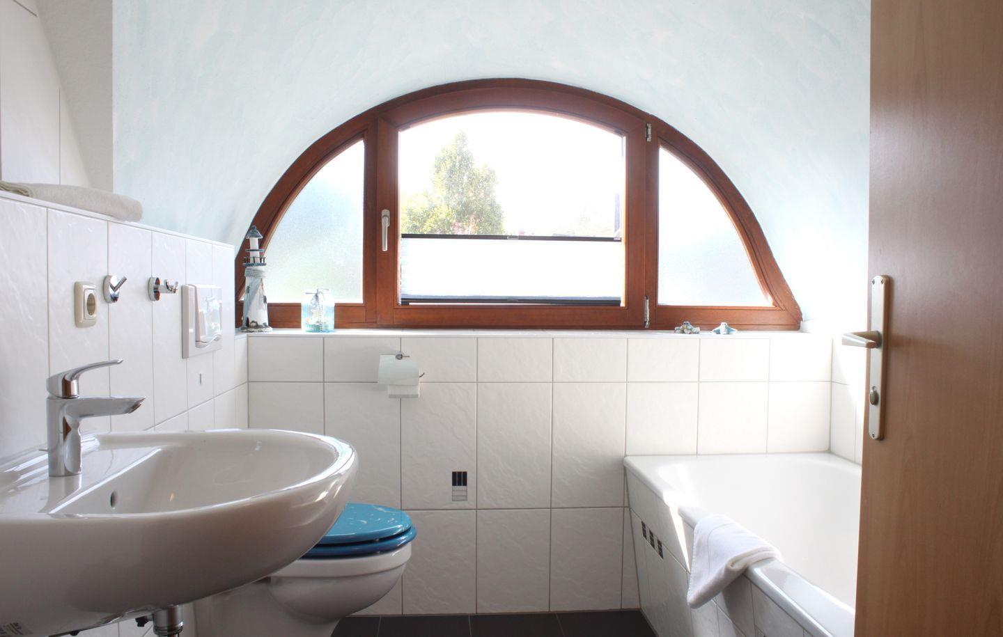 Im Obergeschoss können Sie sich im zweiten Bad/WC in der Badewanne unter der Fledermausgaube erholen. Es erwartet Sie ein Schlafzimmer mit Doppelbett, Kinderreisebett, kleinem Schreibtisch und Kleiderschrank.