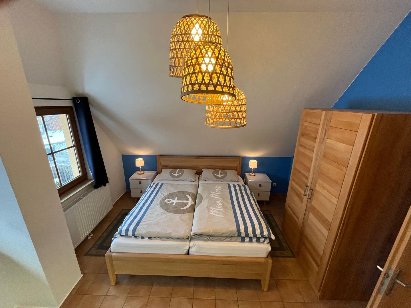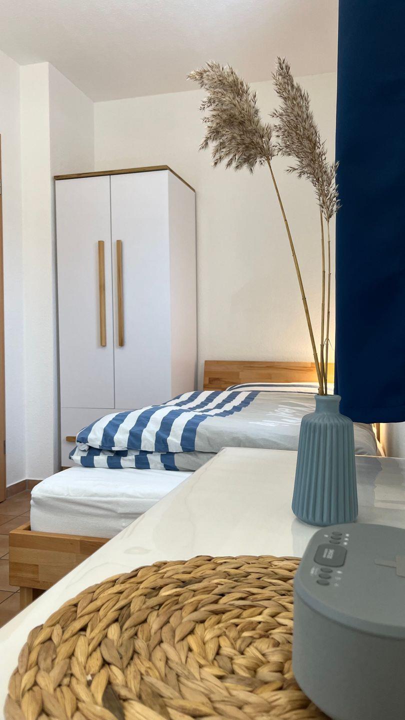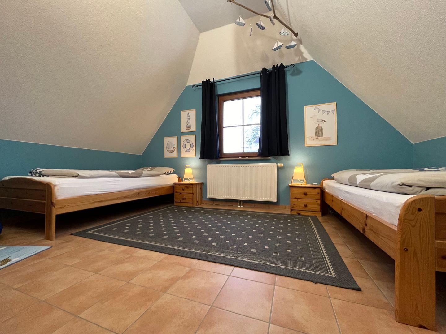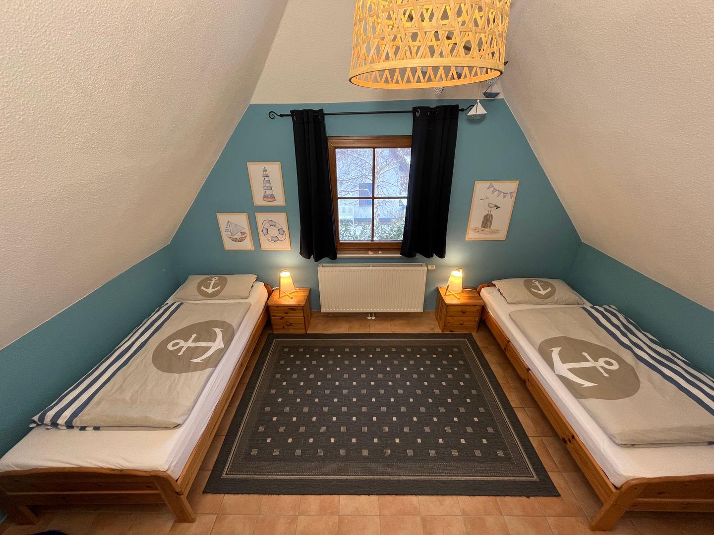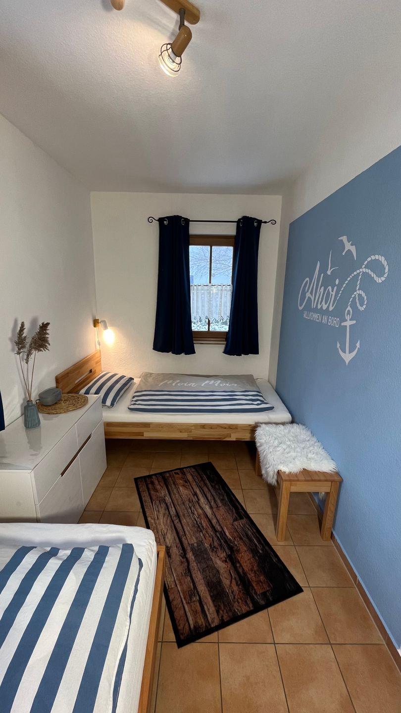 Ein weiteres gemütliches Schlafzimmer mit zwei Einzelbetten steht Ihnen im Erdgeschoss des Hauses zur Verfügung.