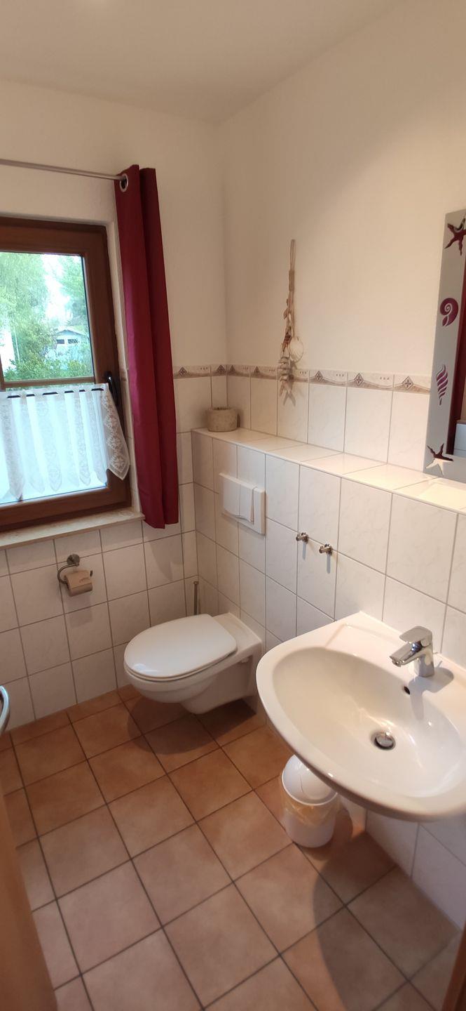 Das Badezimmer im Obergeschoss bietet Ihnen eine Dusche, einen Waschtisch und ein WC. Ein weiteres Gäste-WC erwartet Sie im Erdgeschoss.
