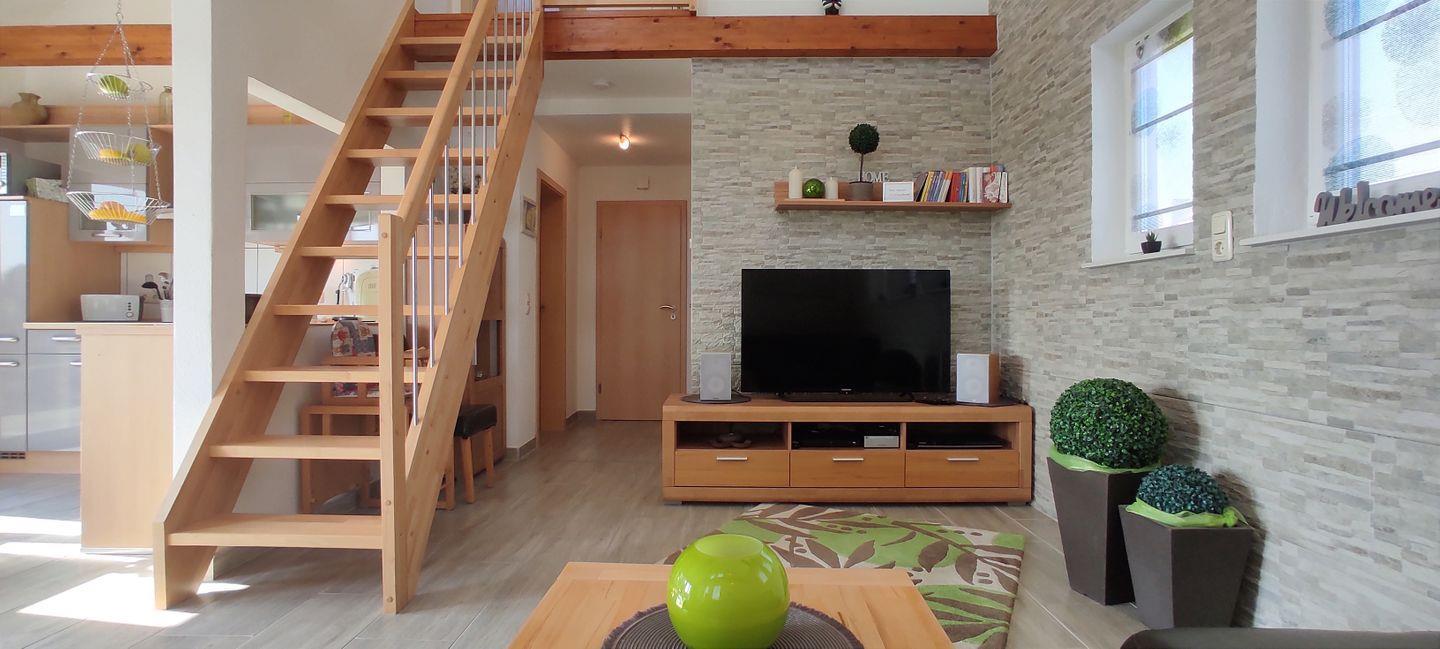 Im Wohnzimmer erwartet Sie Unterhaltung pur. Hier finden Sie einen Fernseher, einen Radio, einen CD- und DVD-Player sowie eine Spielekonsole. Eine Auswahl an Büchern, Spielen, CDs und DVDs steht Ihnen ebenfalls zur Verfügung. Für Familien mit kleinen Kindern bieten wir einen Hochstuhl und ein Reisebett, sowie Steckdosensicherungen für zusätzliche Sicherheit.