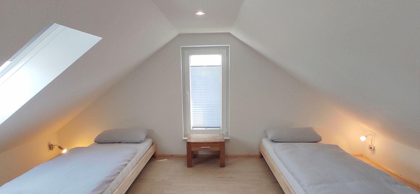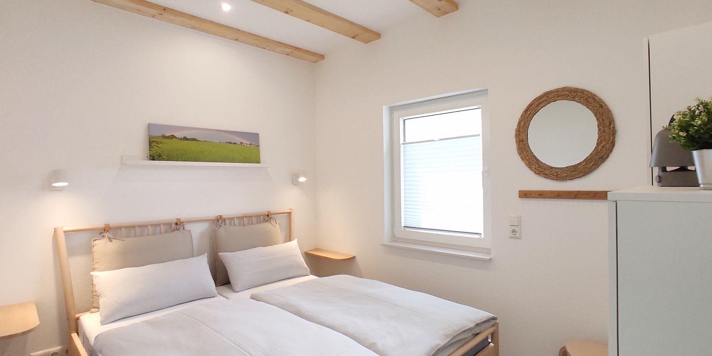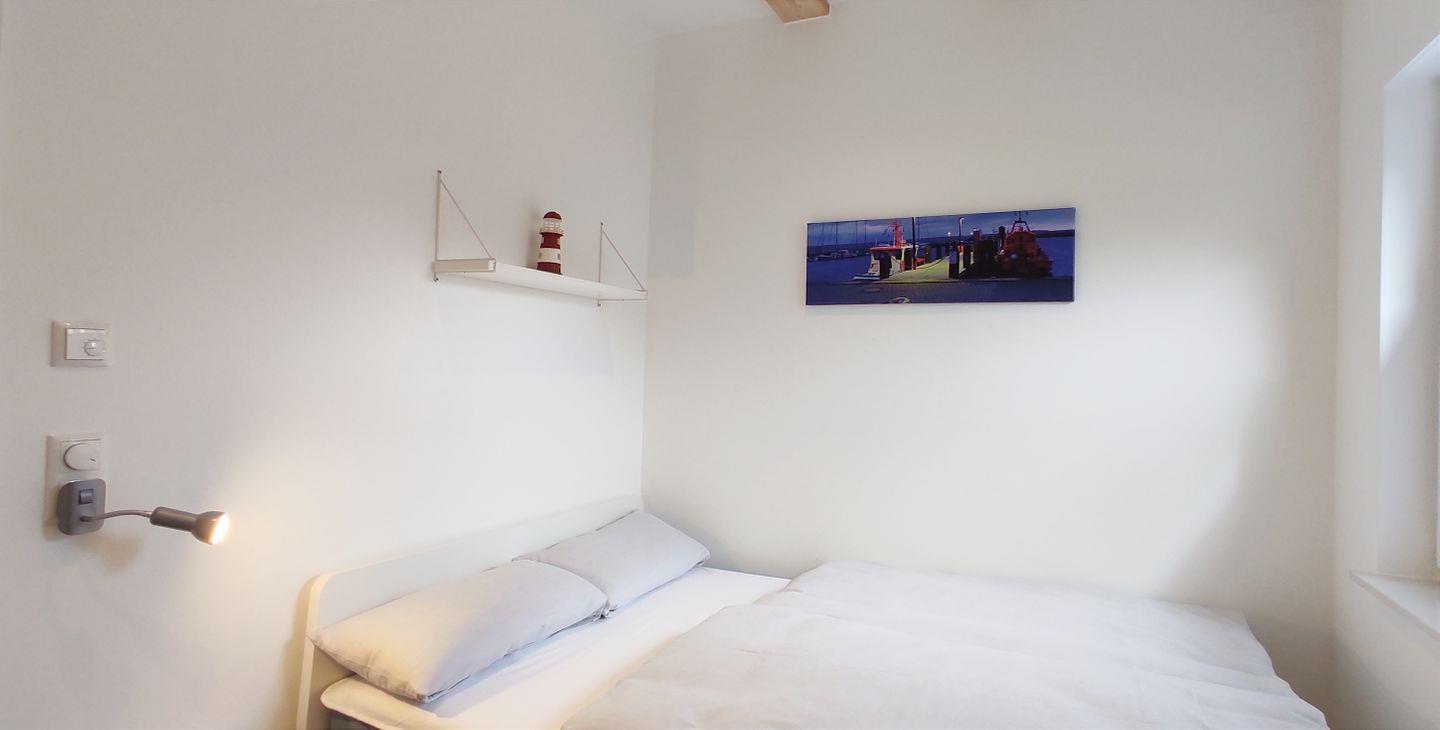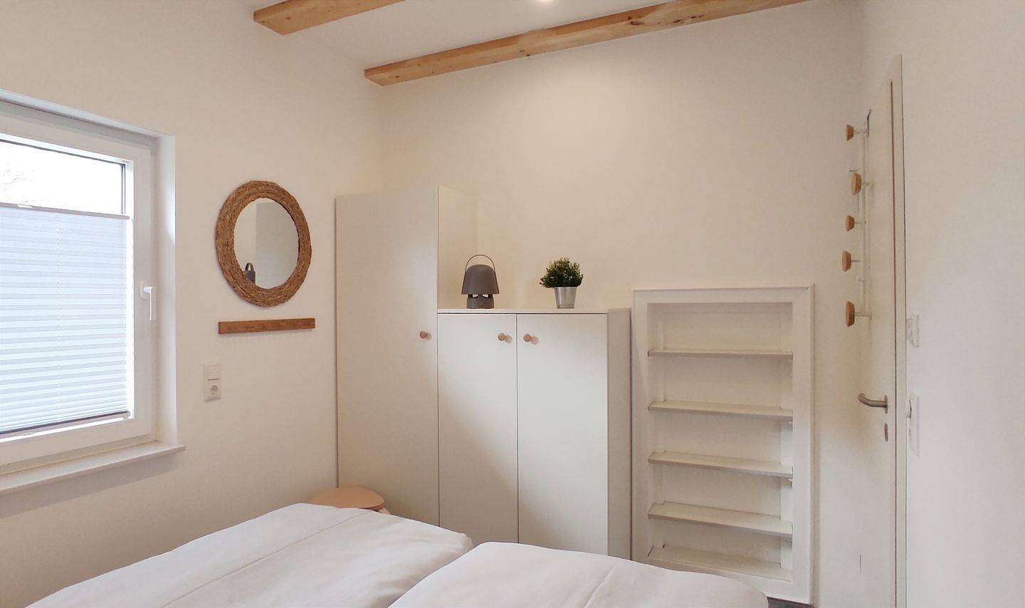 Die beiden Haupt-Schlafzimmer verfügen jeweils über ein komfortables Doppelbett und einen geräumigen Kleiderschrank, um Ihre Sachen ordentlich zu verstauen. Im dritten Schlafzimmer auf der Empore befinden sich zwei gemütliche Einzelbetten und eine Kommode für zusätzlichen Stauraum. Bitte beachten Sie, dass es aufgrund der offenen Gestaltung der Empore keine Tür gibt, was jedoch für ein offenes und luftiges Raumgefühl sorgt.