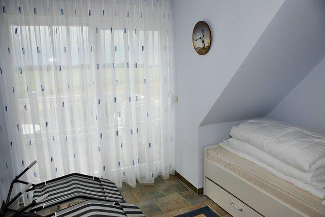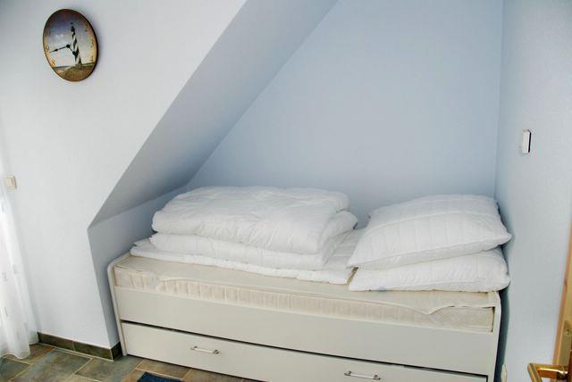 Weitere Schlafmöglichkeiten bietet Ihnen das zweite Schlafzimmer mit einem Einzelbett, welches zusätzlich über eine Ausziehmöglichkeit für eine zweite Person erweitert werden kann.