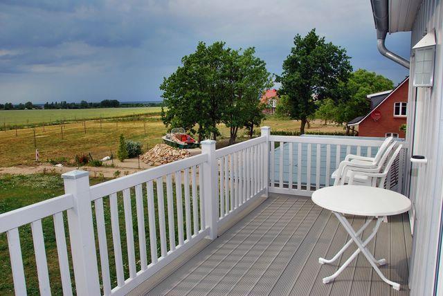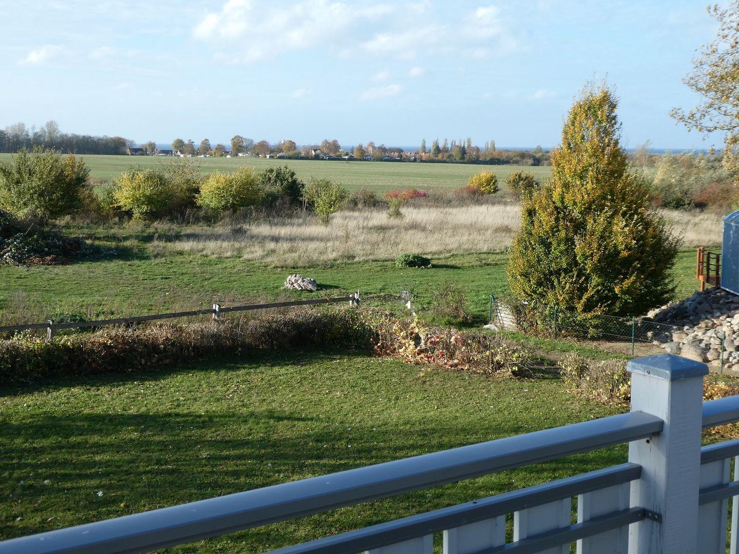 Vom Balkon aus haben Sie einen freien Panoramablick über Wiesen und Felder und die Sonnenuntergänge über dem Meer.