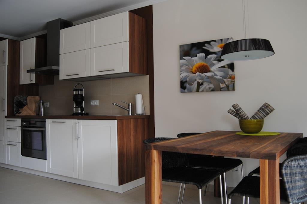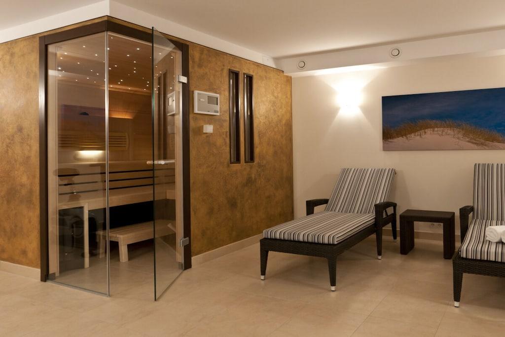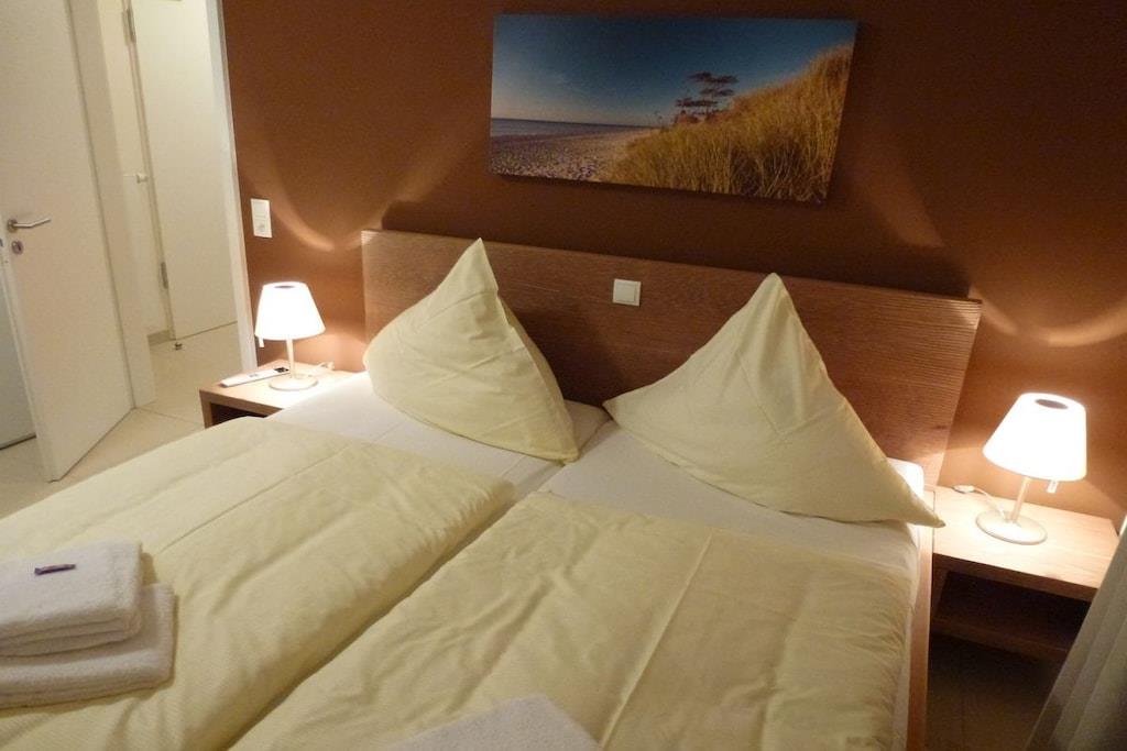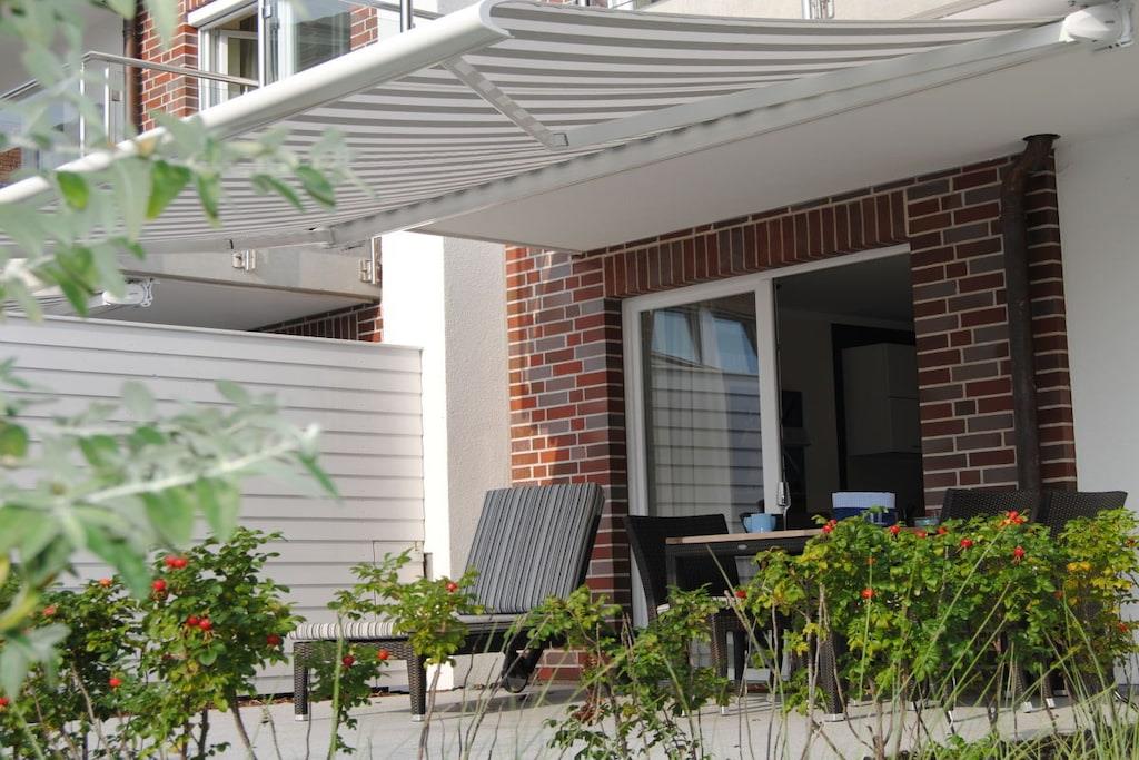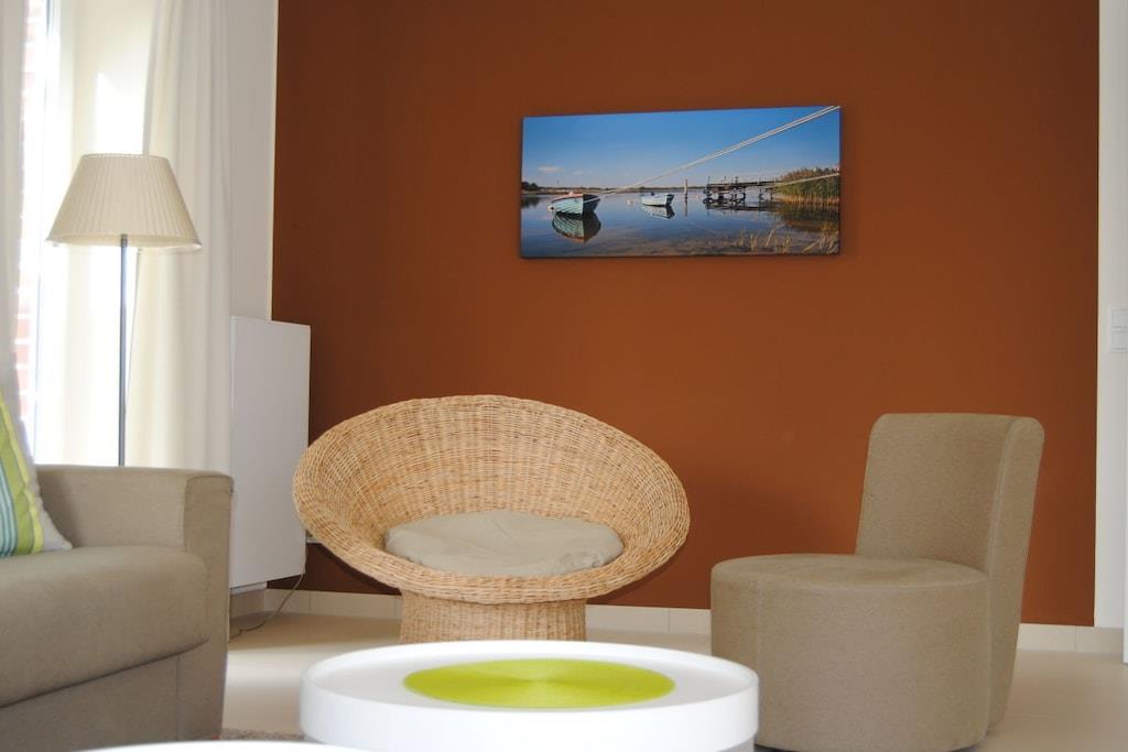 Genießen Sie Ihren Urlaub in Deck 2, mit bodentiefen Fenstern, Südwest Terrasse und elektrischer Sonnenmarkise. Sie gelangen von der komfortablen halboffenen Küche in den großzügigen Wohn-Essbereich. Bei der Einrichtung der Wohnung wurde auf hochwertige Materialien Wert gelegt. In den 2 separaten Schlafzimmern mit TV erwartet Sie hoher Schlafkomfort mit höhenverstellbaren Lattenrosten. Ein Schlafzimmer ist mit einem Doppelbett, das andere mit einem spezial angefertigten Etagenbett mit Buch- und Leseablage ausgestattet. Deck 2 verfügt über Loewe-TV´s, Musikanlage und kostenlosem Internetzugang über WLAN. Das hochwertige Bad mit viel Tageslicht ist mit einer Glaskomfortdusche, Badewanne, Fußbodenheizung und Handtuchwärmer ausgestattet.