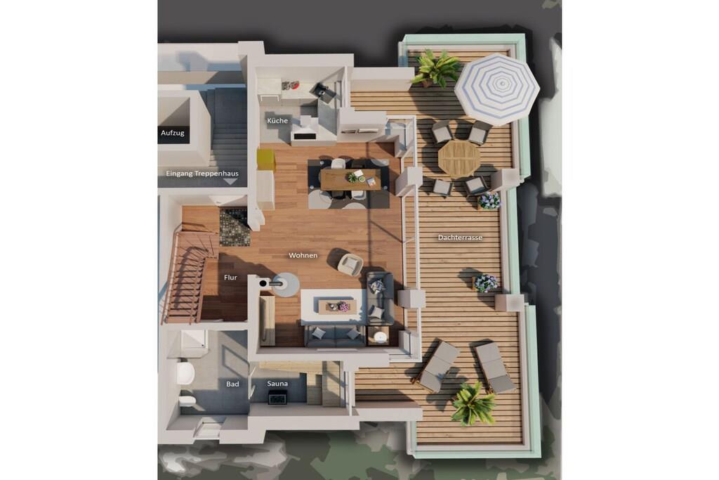 Entspannen Sie in der hochwertigen Penthousewohnung mit Sauna und großer Dachterrasse am Niendorfer Hafen.