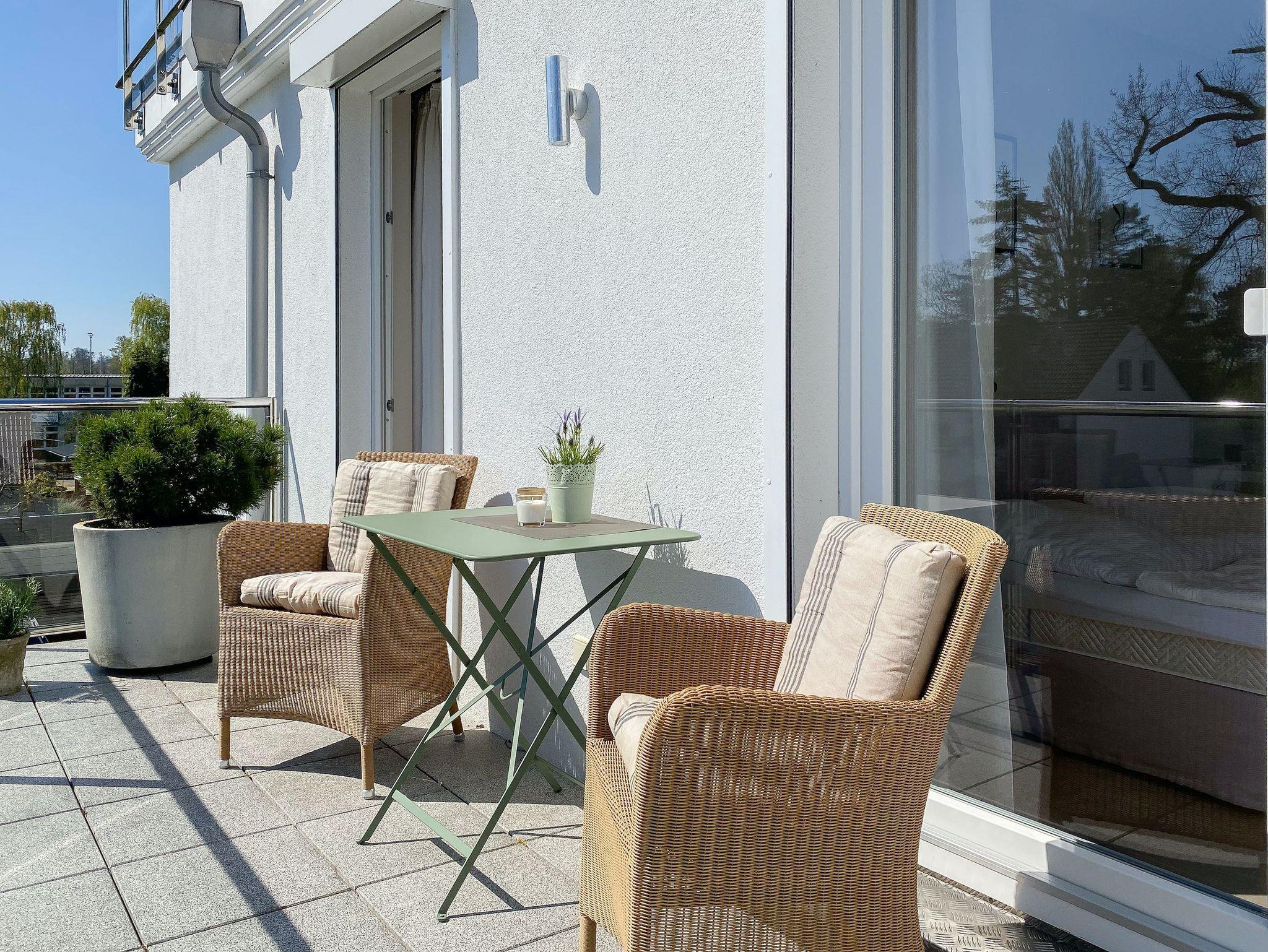 Luxuriöse Ferienwohnung Strandhafer in zweiter Reihe zum Meer im Herzen von Timmendorfer Strand mit 2 Balkonen und moderner Ausstattung.