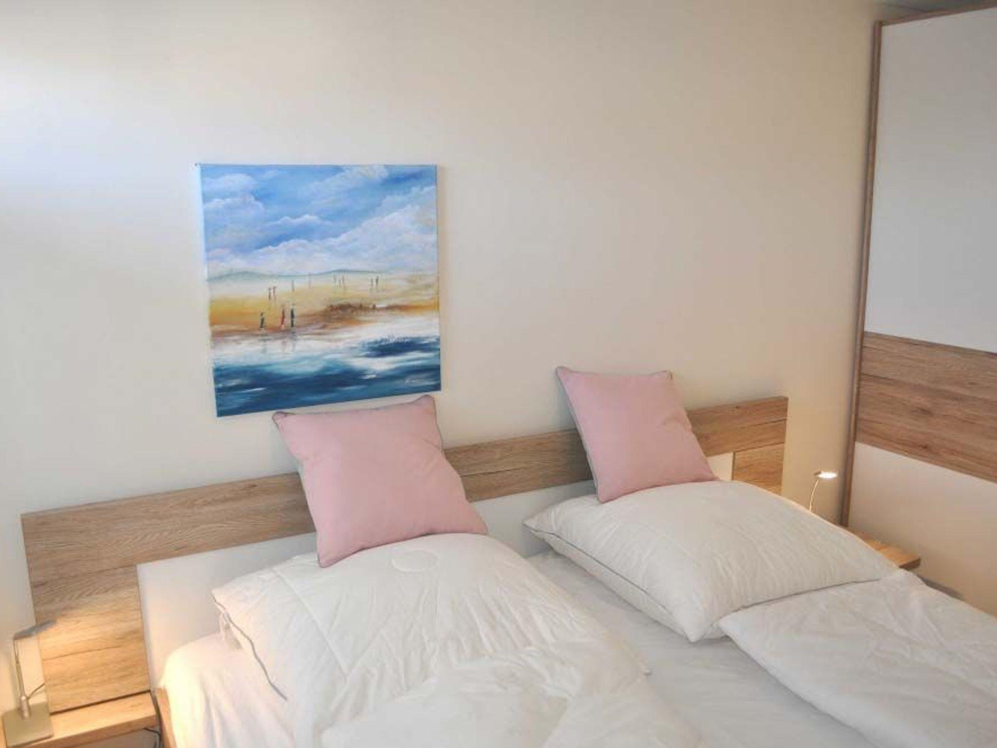 Schlafzimmer 1: 2 Matratzen, Ablage, Doppelbett 2,00 x 1,80 m, Flachbildschirm, Kabel-TV, Kleiderschrank, Nachttisch, Staubsauger, Verdunklungsrollo