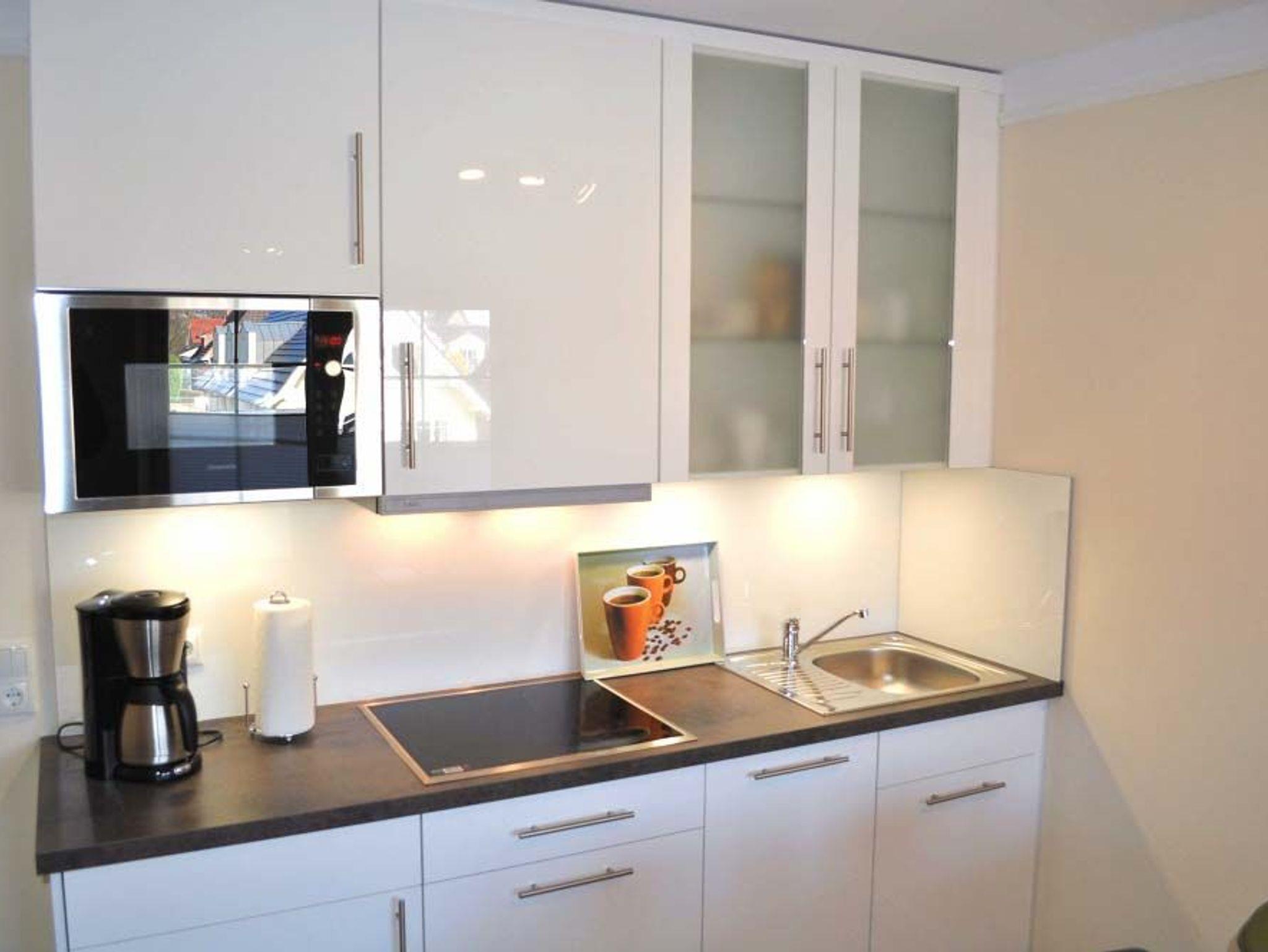Wohnzimmer: 2 Hocker, 4 Plattenherd mit Ceranfeld, 4 Stühle, Anrichte, Bodenlampe, Couchtisch, Dunstabzugshaube, Eierkocher, Esstisch, Flachbildschirm, Geschirr, Kabel-TV, Kaffeemaschine, Kochtöpfe, Kofferradio mit CD-Player, Küchenzeile, Kühlschrank mit 3* Gefrierfach, Mikrowelle, Nespresso Maschine, Schlafcouch, Sessel, Spülmaschine, Toaster, TV-Tisch Wasserkocher