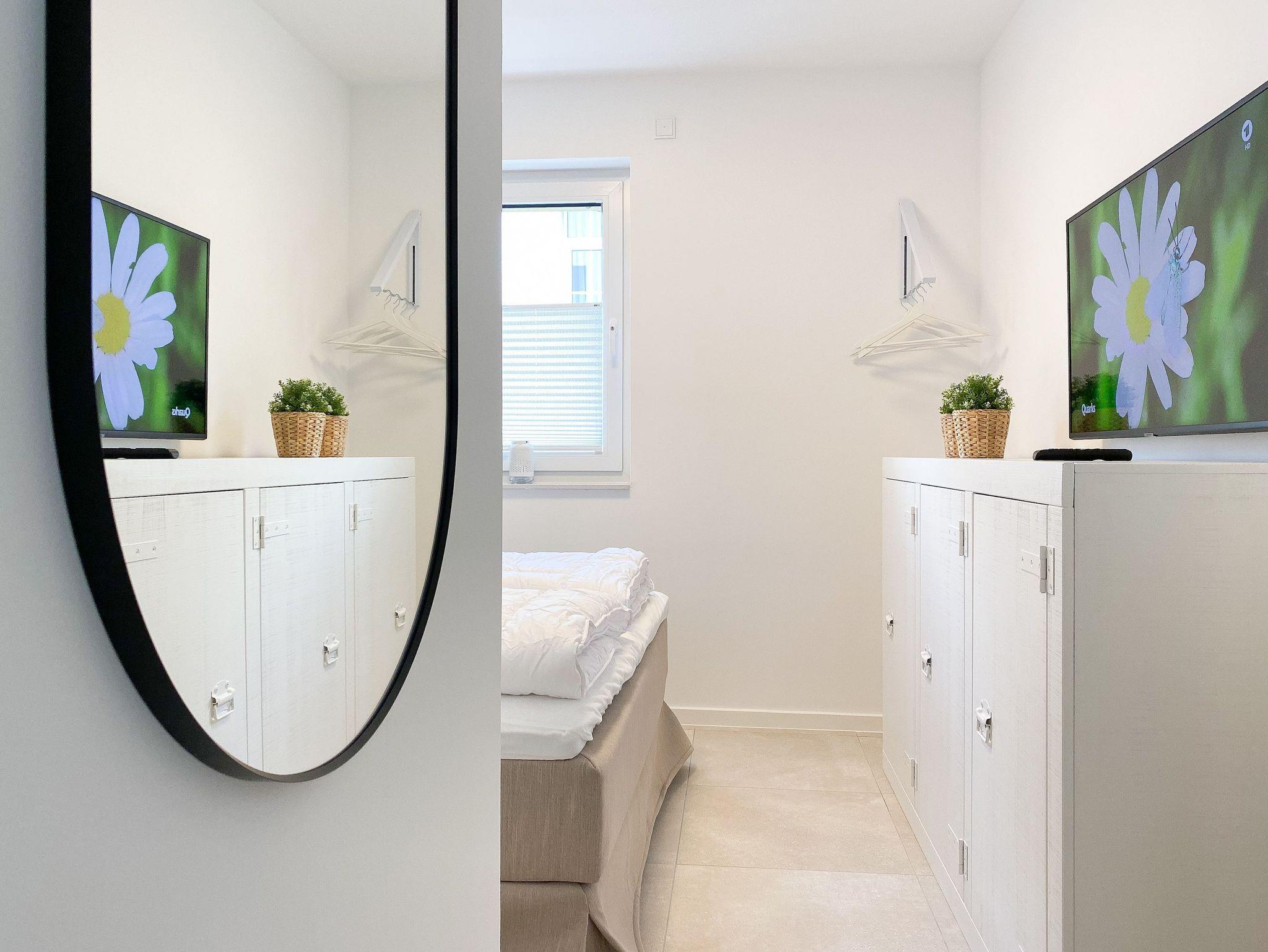 Zehn exklusive Wohnungen mit Balkonen und Terrassen zur Meerseite bieten traumhafte Ausblicke bis auf die Ostsee und jeglichen Komfort zur Gewährleistung eines hohen Wohnstandards in schönem Ambiente. Alle Wohnungen verfügen über moderne Bäder mit Walk In Duschen, Fußbodenheizung und elektrische Außenjalousien mit einstellbaren Lamellen, die gleichermaßen für Tageslicht und Privatsphäre sorgen.