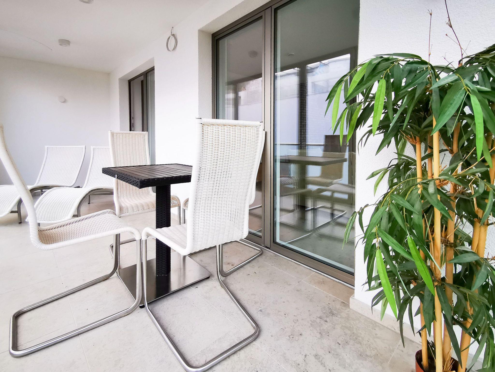 Die Ferienwohnung liegt im 2. Obergeschoss einer neuen Wohnanlage und bietet auf über 100 qm Wohnfläche mit 3 separaten Schlafzimmern, 2 Bädern und einem zusätzlichen Gäste WC hervorragend Platz für bis zu 6 Personen. Die hellen Natursteinfußböden und die geschmackvolle Inneneinrichtung sind äußerst modern und die luxuriöse Zusatzausstattung wie die integrierte Sauna, lässt keine Wünsche offen. Sie möchten ein leckeres Frühstück bei aufgehender Morgensonne genießen? Dann schieben Sie einfach die bodentiefe Glasfront des extravaganten Wintergartens auf und machen diesen zum offenen Balkon. Gartenmöbel und Sonnenliegen stehen selbstverständlich zur Verfügung.