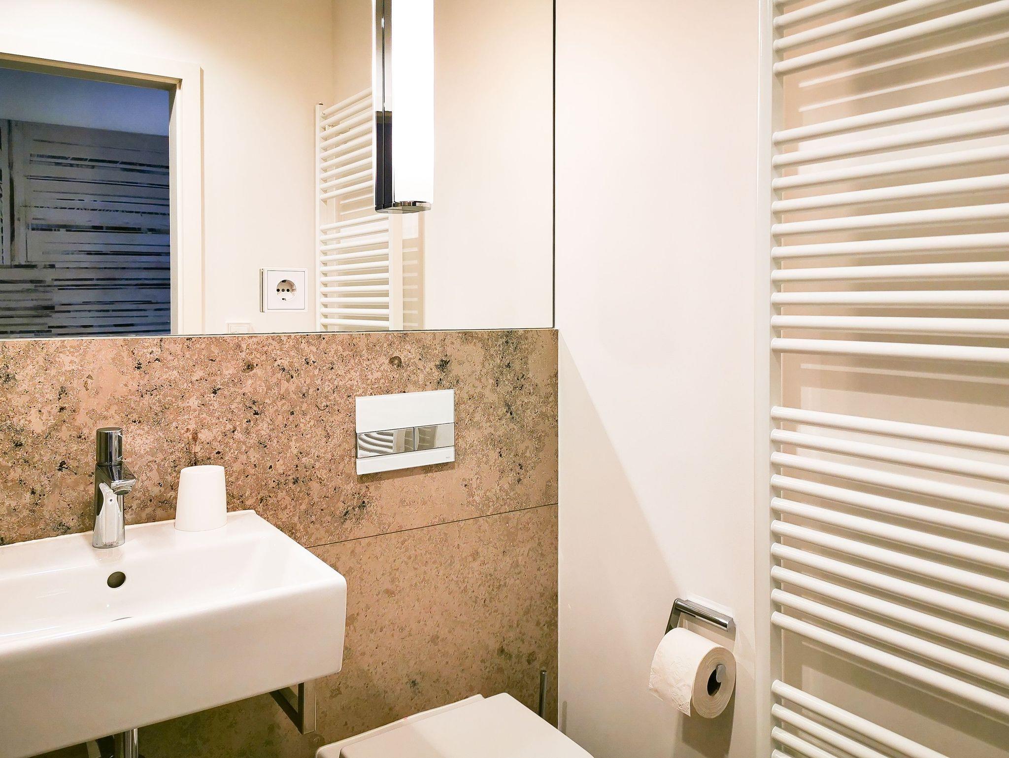 Waschmaschine und Trockner stehen ausschließlich unseren Gästen zur kostenlosen Nutzung zur Verfügung und sind im Keller untergebracht. Ein PKW-Stellplatz ist für Sie in der Tiefgarage reserviert (Einfahrtshöhe 1,95 m). Ein Fahrradkeller ist vorhanden.