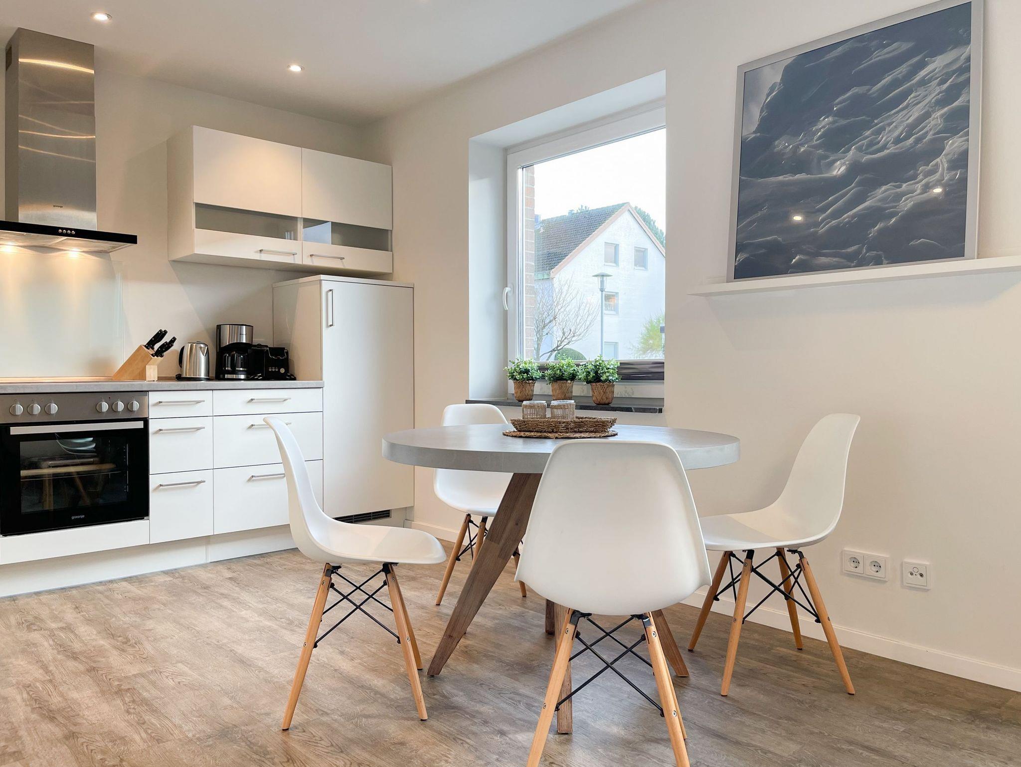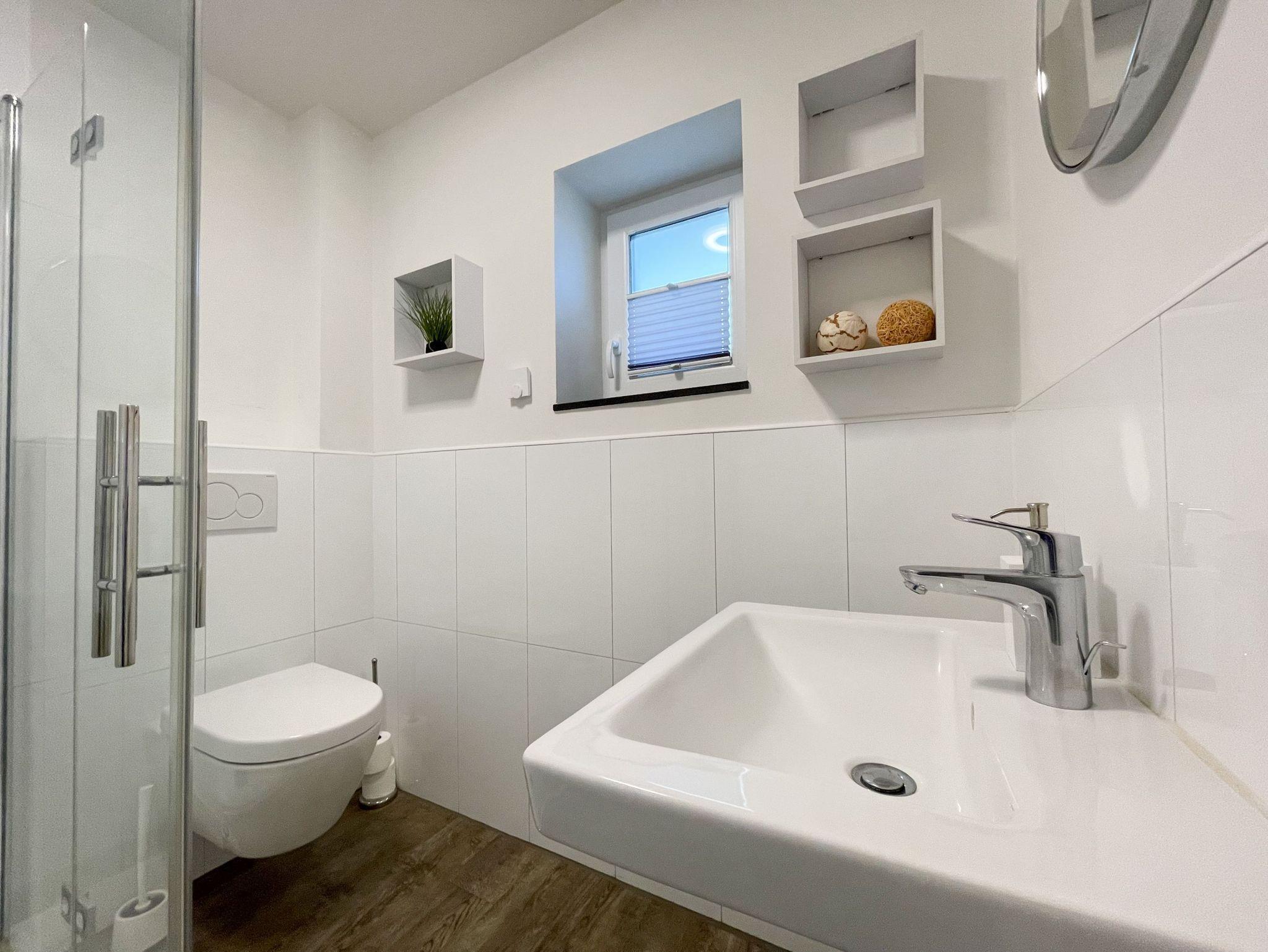 Die Ferienwohnung Waterkant #1 befindet sich im Erdgeschoss und bietet mit 1 Schlafzimmer auf 50 qm ausreichend Raum für 2-3 Personen, um einen entspannten Ostseeurlaub in Strandnähe zu verleben. Es erwartet Sie ein heller Wohnbereich mit Schlafsofa, ein anschließender Essbereich und eine offene Einbauküche, gut ausgestattet mit Ceranfeld, Backofen, Geschirrspüler und Kühl- und Gefrierschrank. Die möblierte Terrasse in Südwestausrichtung bietet einen schönen Platz im Freien zu jeder Tageszeit. Das Schlafzimmer ist mit einem Doppelbett (Boxspring 180x200), TV, Plissees und Vorhang zum Abdunkeln und einem Kleiderschrank eingerichtet. Das Bad ist mit Dusche, Waschtisch, WC , Fenster und Handtuchwärmer ausgestattet. WLAN kann selbstverständlich kostenlos genutzt werden. Ein Außenstellplatz gehört zur Wohnung. Ein abschließbarer Fahrradraum kann gemeinschaftlich genutzt werden, ebenso Waschmaschine und Trockner, die im separaten Waschraum untergebracht sind.
