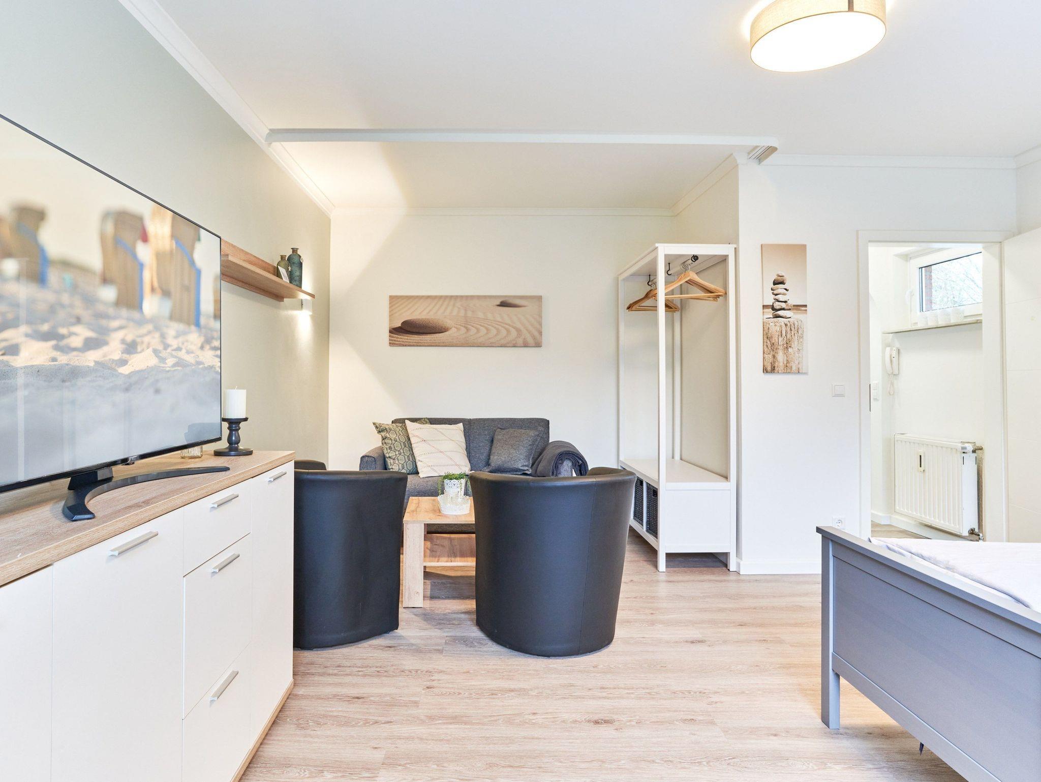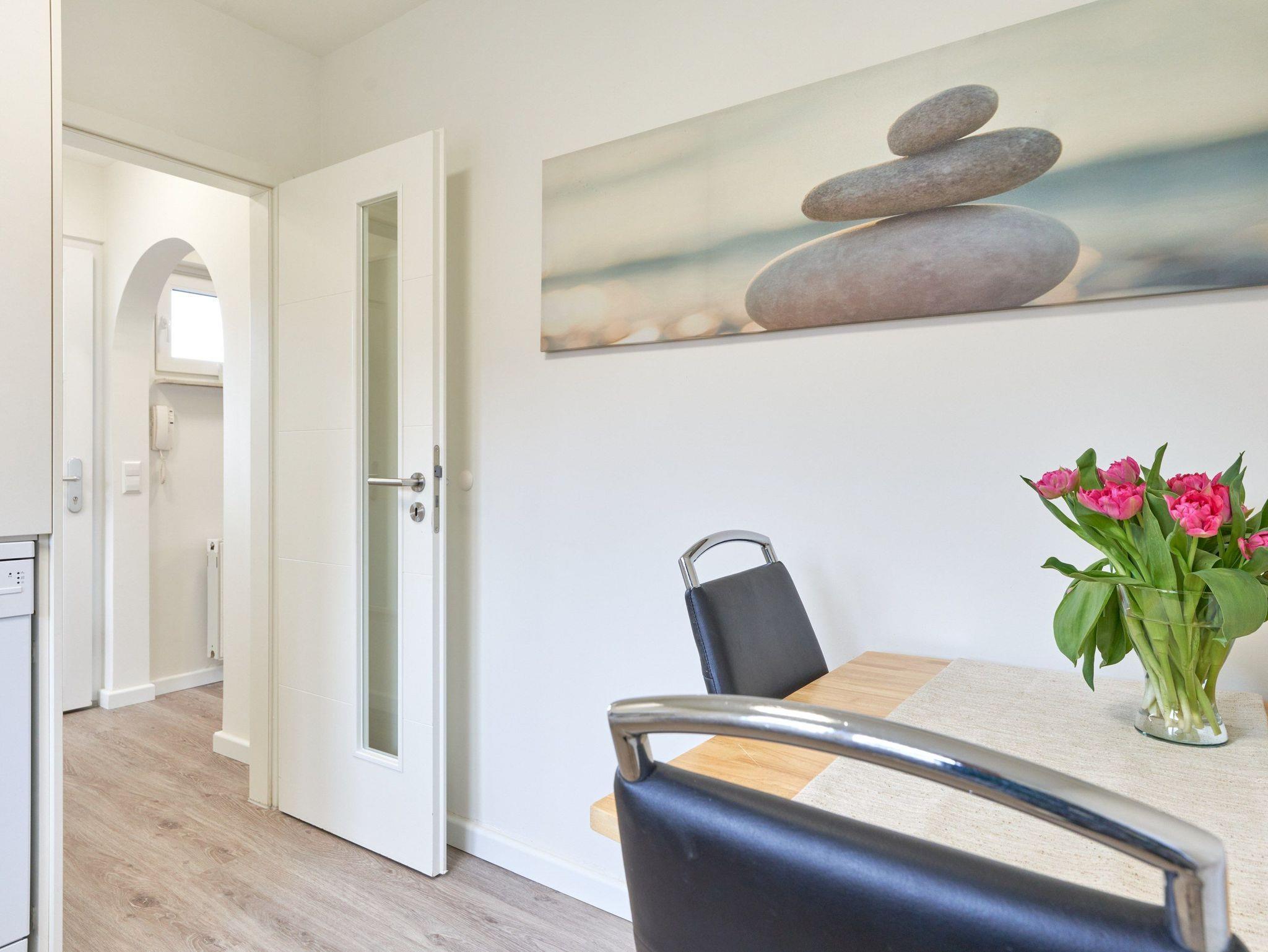 Durch einen separaten Eingang erreichen Sie dieses in 2022 umfassend renovierte Appartment mit möbliertem Balkon. Die vollständig eingerichtete Küche bietet einen Essplatz, Herd mit Backofen, eine neue Filter Kaffeemaschine sowie eine Geschirrspülmaschine. Das moderne Tageslichtbad ist mit Echtglasdusche, Heizkörper für Handtücher, neuen Badobjekten, Föhn und Kosmetikspiegel eingerichtet. Der geschmackvoll gestaltete Wohn-/Schlafbereich ist mit Designfußbodenfußboden, Flachbildschirmfernseher, einem Doppelbett sowie einem Sofa ausgestattet. Verdunkelungsgardinen im kombinierten Wohn-/Schlafbereich sorgen für eine gemütliche Atmosphäre und ungestörten Schlaf.